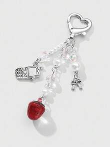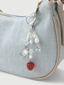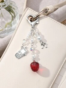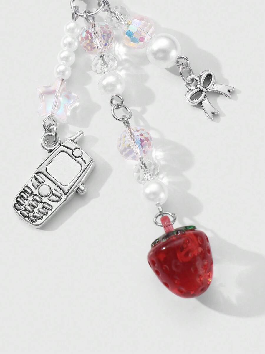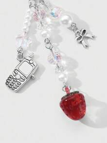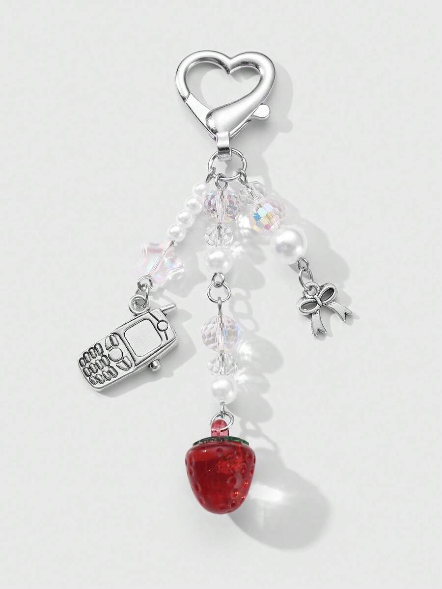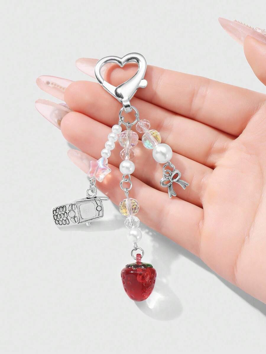 Kawaii 1pc Y2K Chic Versatile High-End Faux Pearl & Crystal Beaded Mini Phone, Star, Bow, Red Resin Strawberry DIY Keychain Bag Charm, Suitable For Women, Daily Wear, Holiday Gift