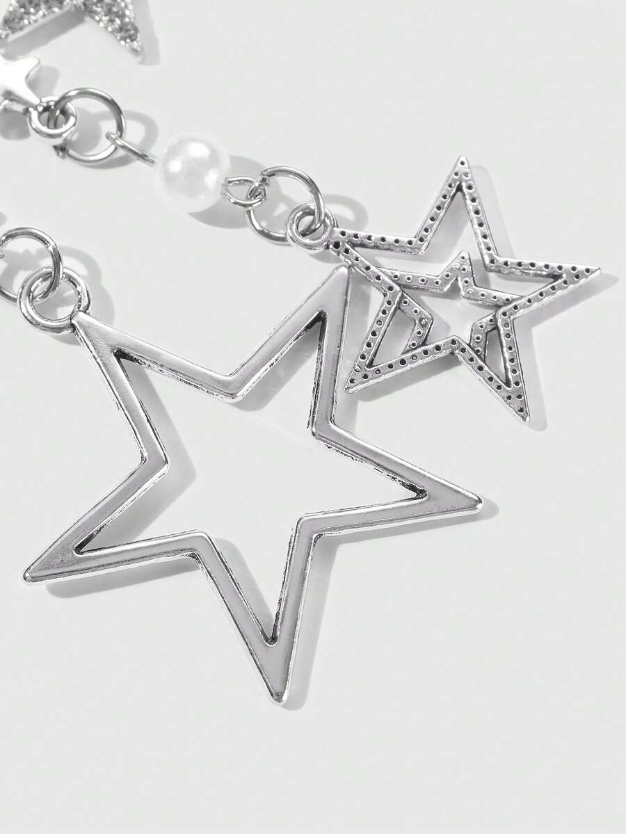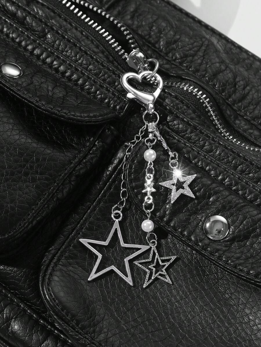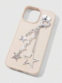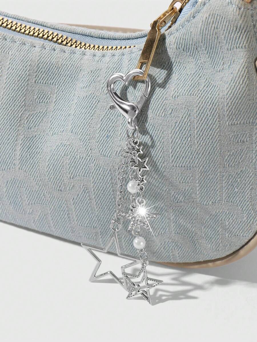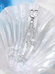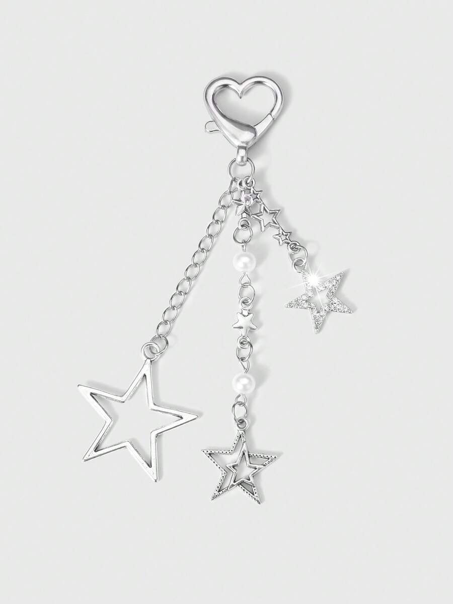 Kawaii 1pc Y2K Fashion Delicate Casual Versatile High-Quality Silver Chain White Faux Pearl Rhinestone Hollow Star Decor DIY Heart Keychain Bag Charm Phone Pendant Cup Accessory, Comes With Phone Holder Sticker & Heart Decor, Suitable For Women, Great Gift