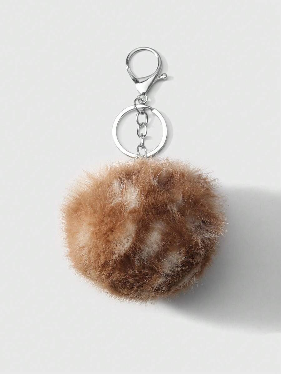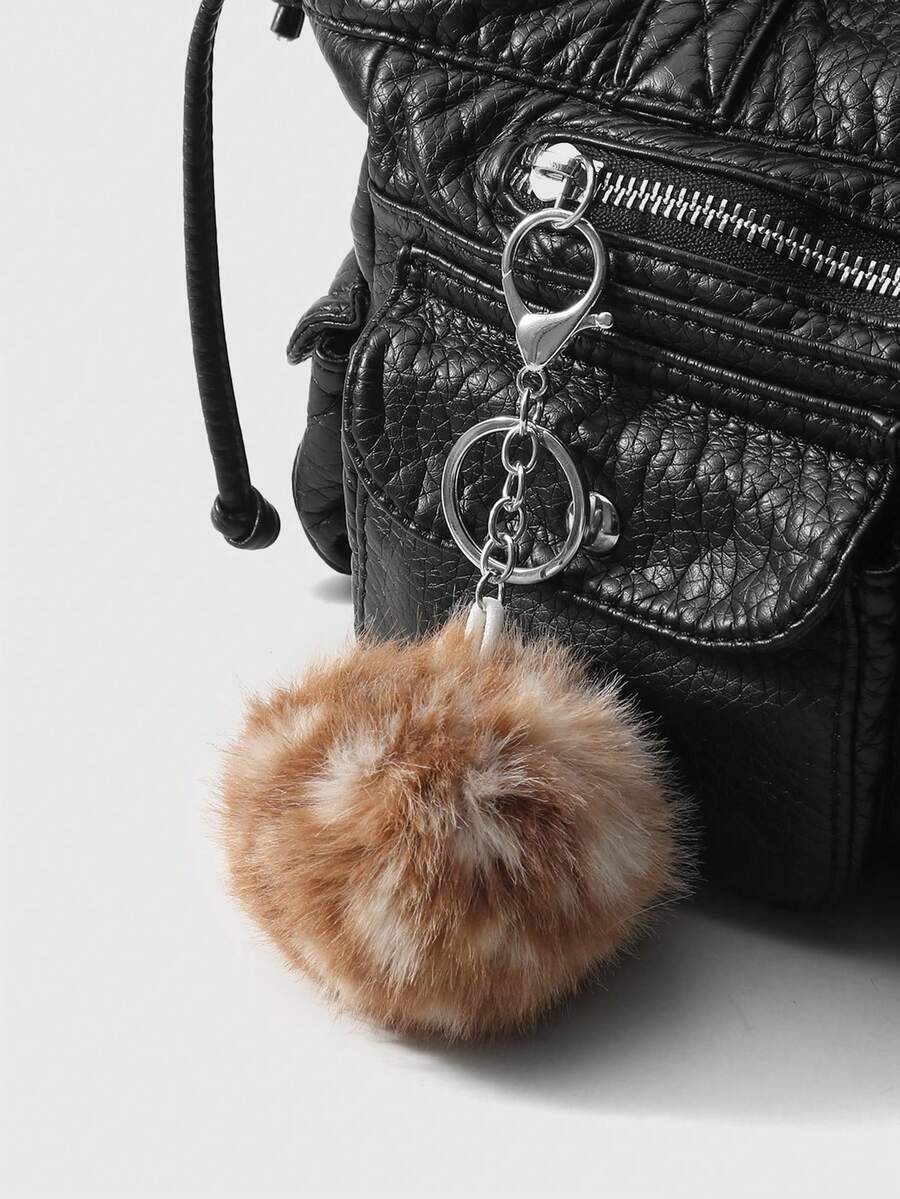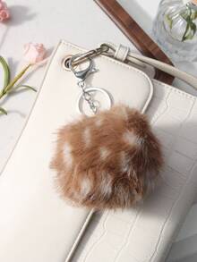 Kawaii 1pc Y2K Retro Chic Punk High-End Gray Faux Fur Animal Print Rivet 3D Heart Crystal Hollow Cross DIY Keychain Bag Charm, Suitable For Women, Daily Wear, Holiday Gift