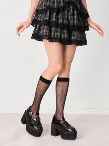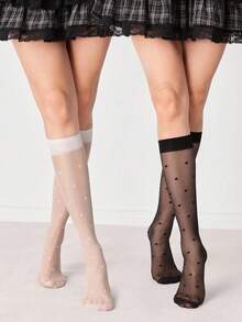 Kawaii 2 Pairs Cute Polka Dot Pattern Mid-Calf Socks, Minimalist Sweet Style Knee High Socks, Fashionable & Versatile Daily Wear Women Socks