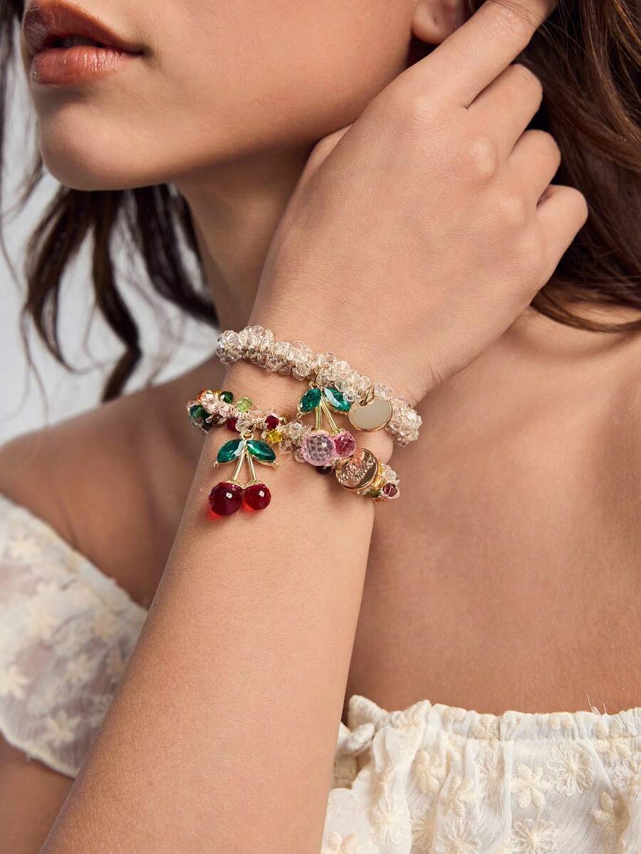 Kawaii 2 Pcs Women's Elegant Cherry Crystal Hair Scrunchies, Suitable For Daily Use, Home, School, Beach, Work Commute, Party, Holiday, Birthday, Back To School, New Year, Valentine's Day, Mother's Day Gift, Wedding, Music Festival, Graduation Hair Ties Ponytail Holders Hair Elastics Hair Rope, School Stuff, Hair Bobbles ,Gifts Hairbands