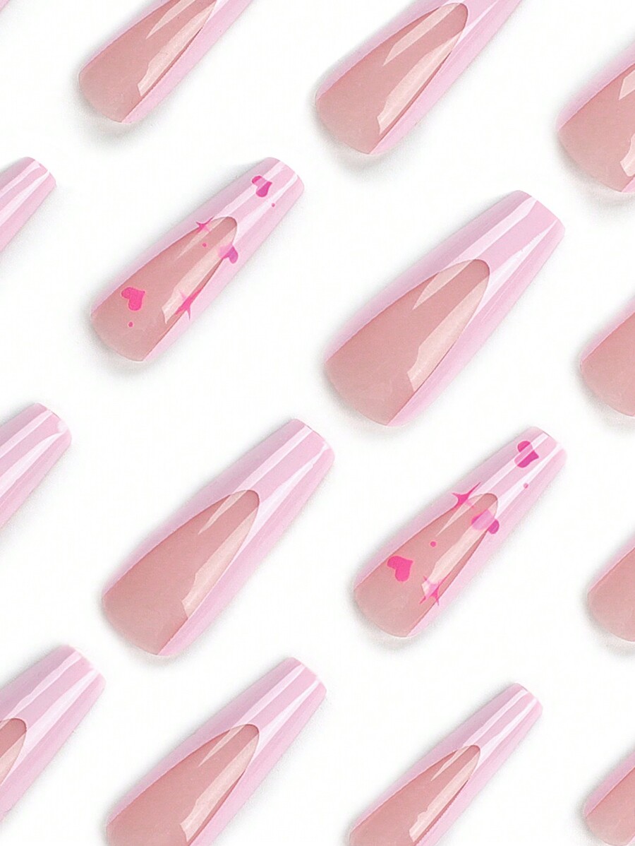 Kawaii 24pcs/Set French Heart & Star Design Full Wrap Nail Tips With Removable Adhesive