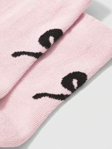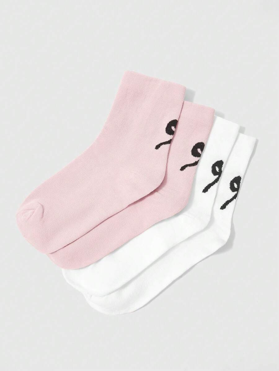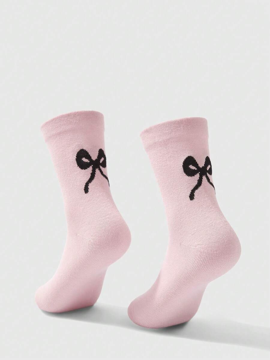 Kawaii 2pairs Women's Bow Design Crew Socks, Versatile White & Pink Combination, Cute Socks
