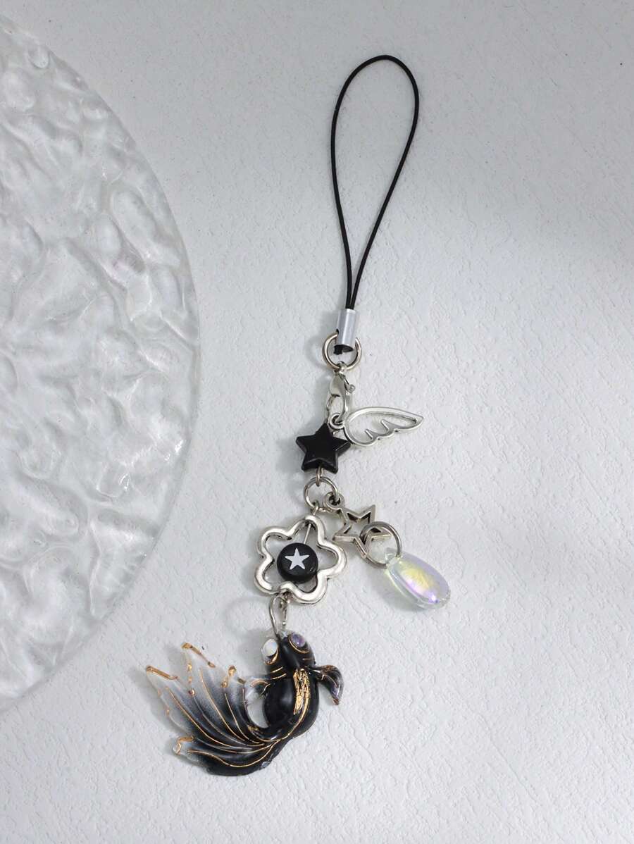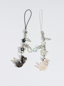 Kawaii 2pcs Black & White Lucky Koi Fish Lanyard Phone Strap, Suitable For Students And Friends As Daily/Birthday/Festival Gift To Deliver Good Luck