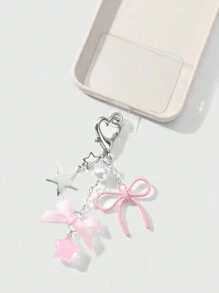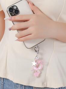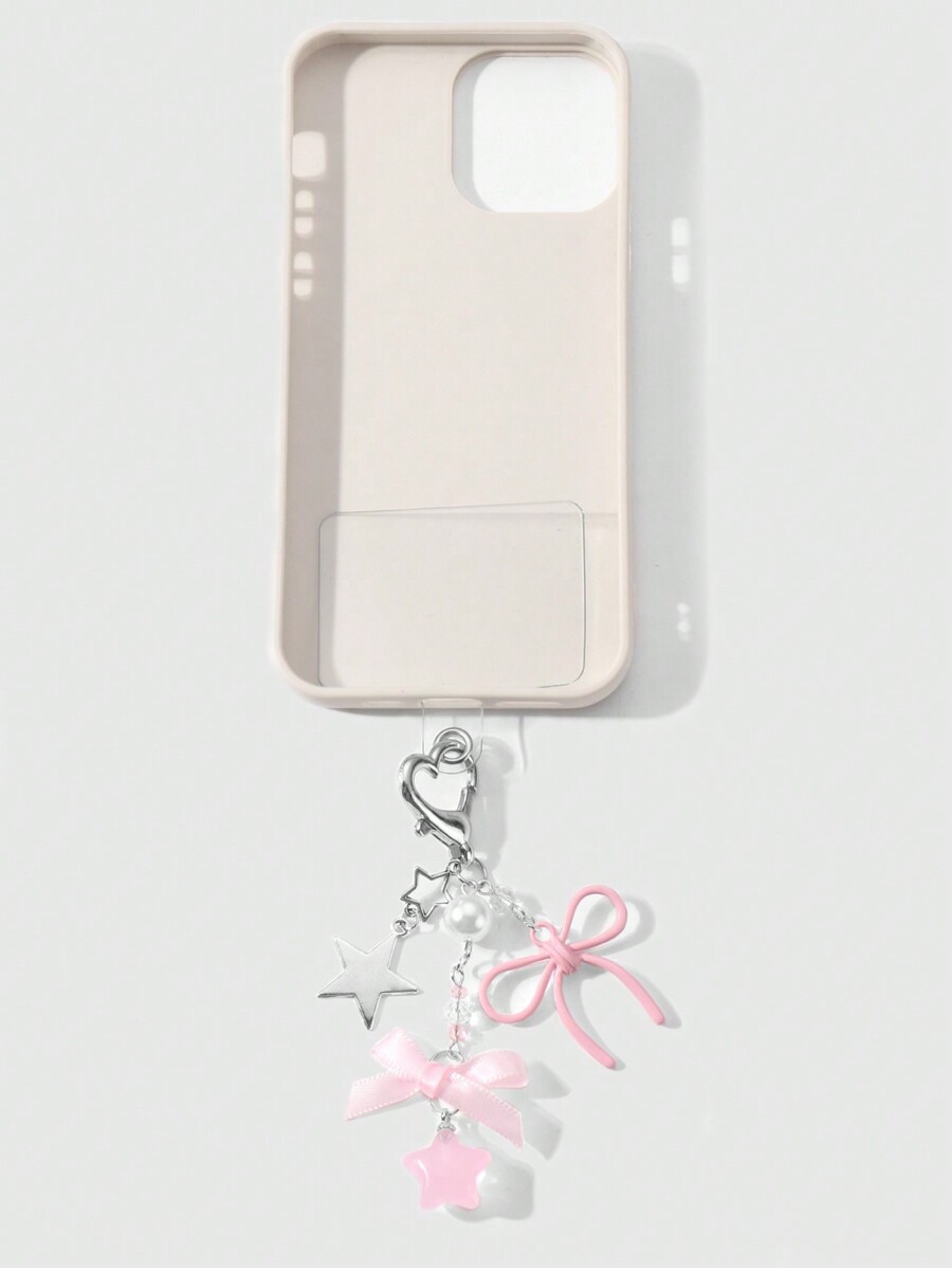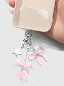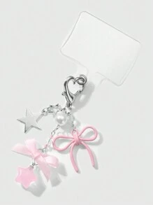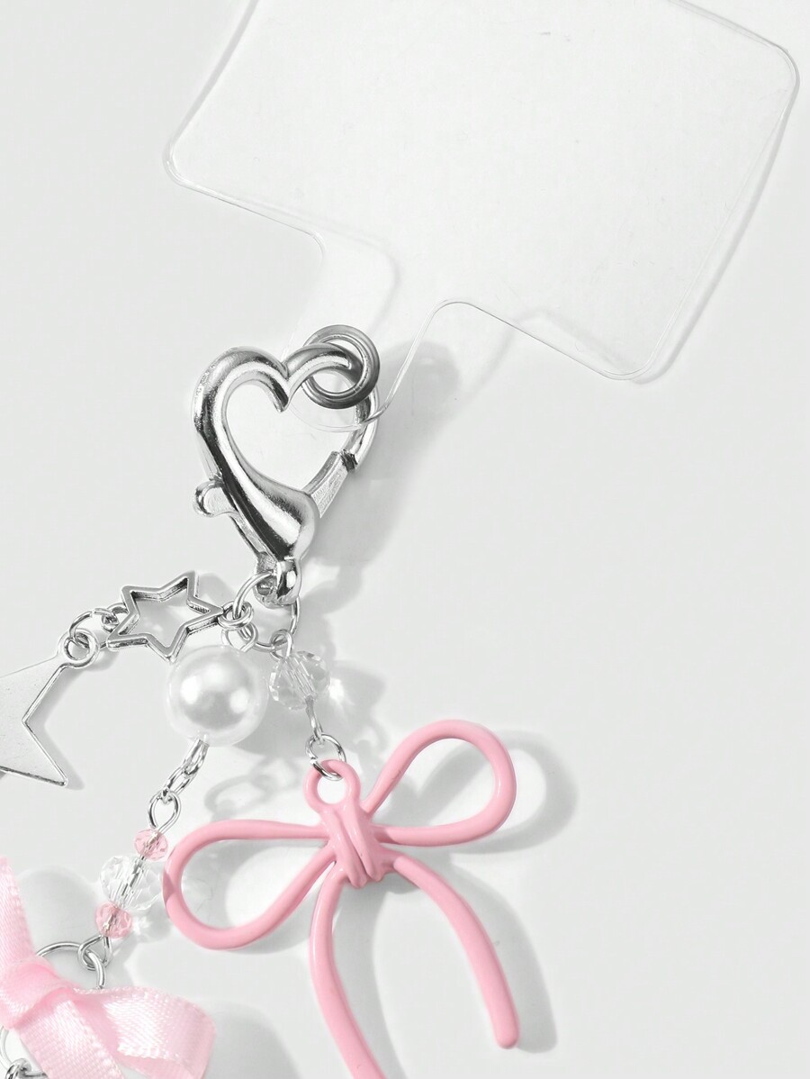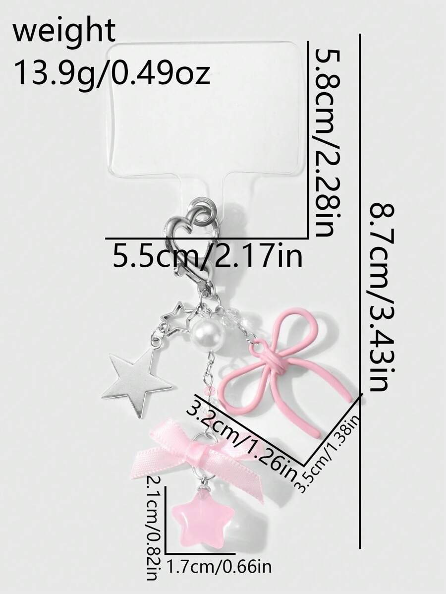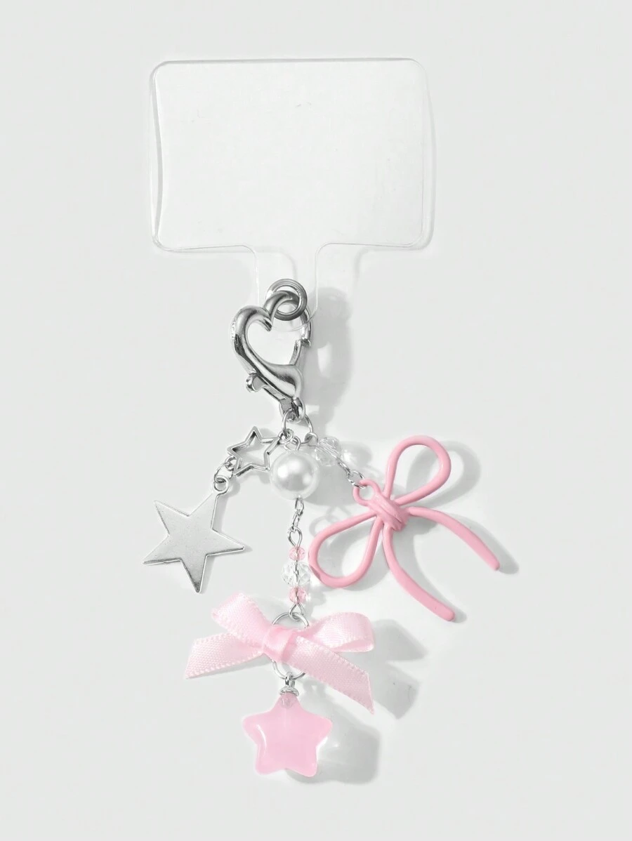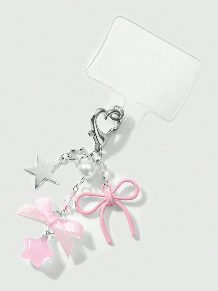 Kawaii 2pcs Elegant&Sweet Minimalist Fashion High-Quality Silver Star Chain Faux Pearl Pink Acrylic Ribbons Bow Star Pendant DIY Phone Charm/Keychain/Bag Accessories, Suitable For Women/Girls, Daily Wear Or Holiday Gift