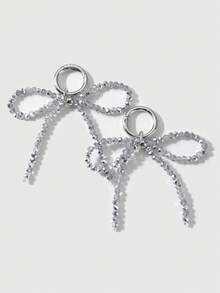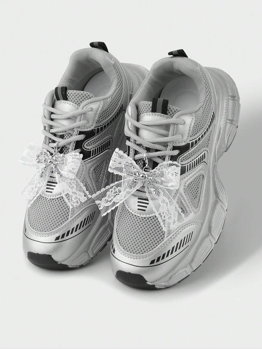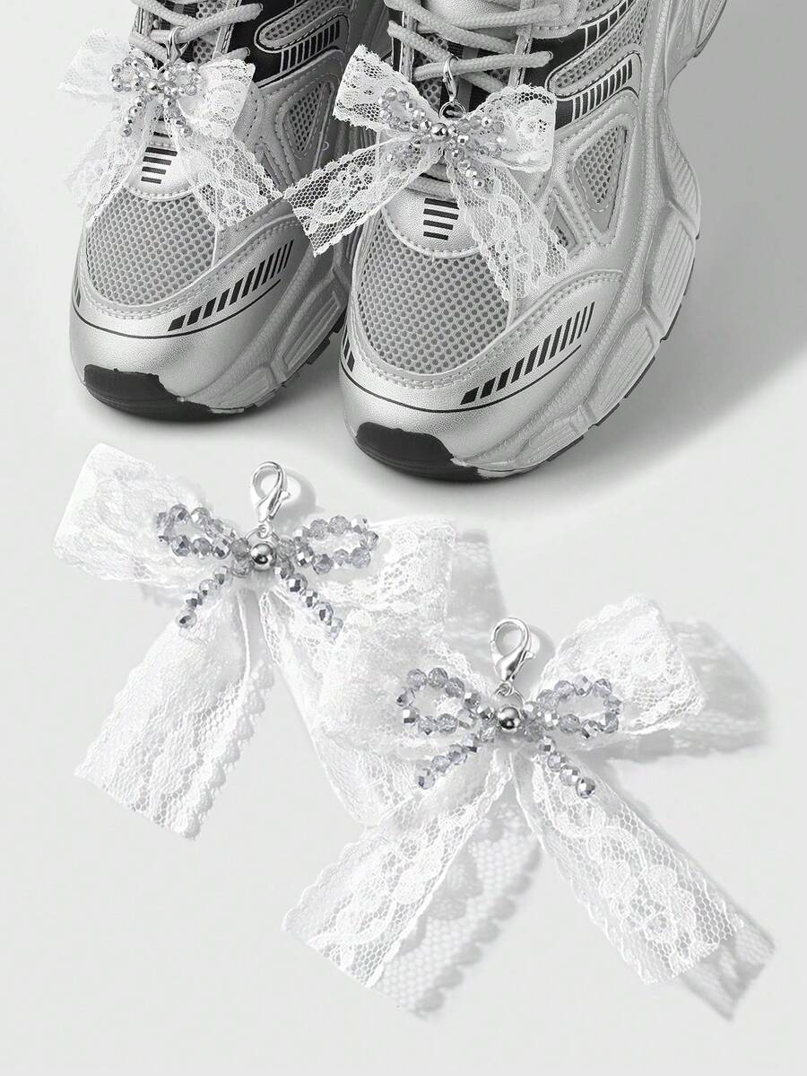 Kawaii 2pcs Fashionable High-End Handmade Beaded, Crystal-Like White Mesh Lace Bow Shoe Clips, Ornamental Set, Suitable For Women, Daily Wear & Gifts