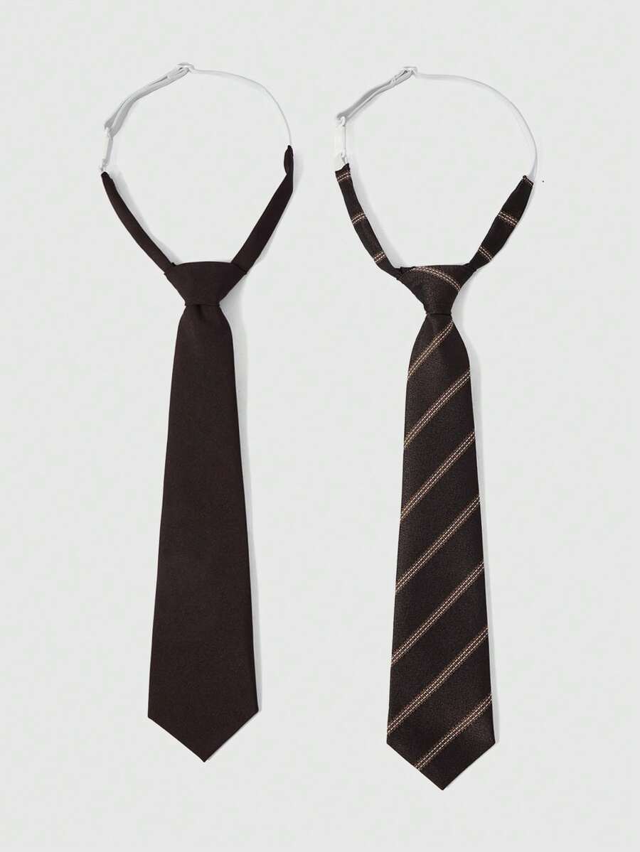 Kawaii 2pcs Handmade Solid Color & Diagonal Stripe Combination Polyester Necktie, Unisex For Students & Adults, Suitable For Various Occasions Such As Daily Wear, School Uniform, And Business Suit