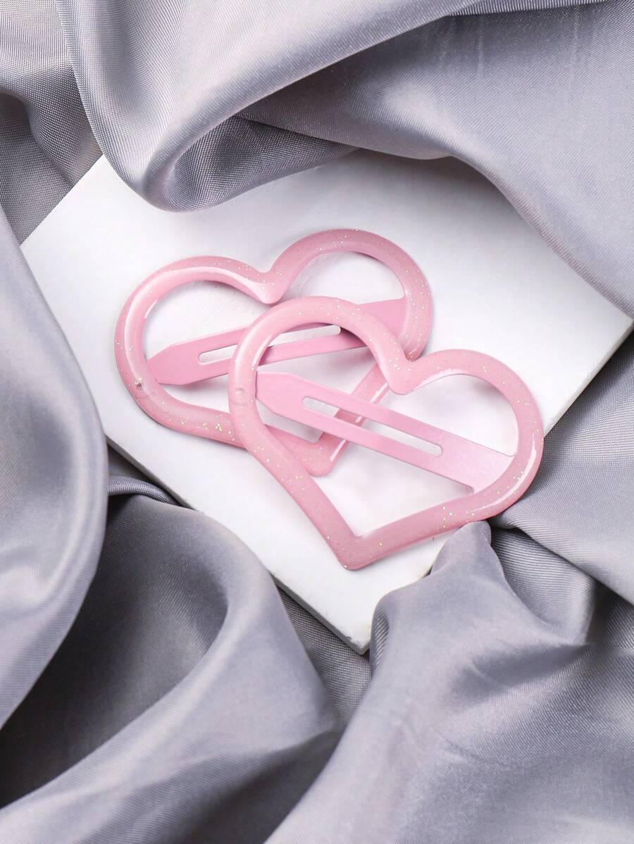 Kawaii 2pcs Minimalist Sweet Cute High-Quality Pink Glitter Heart Hair Clips, Perfect For Women's Everyday Use And Holiday Gifts Valentines Claw Clips Hair Claws Hair Barrettes