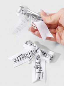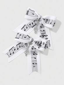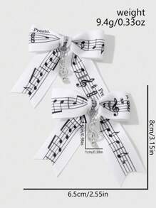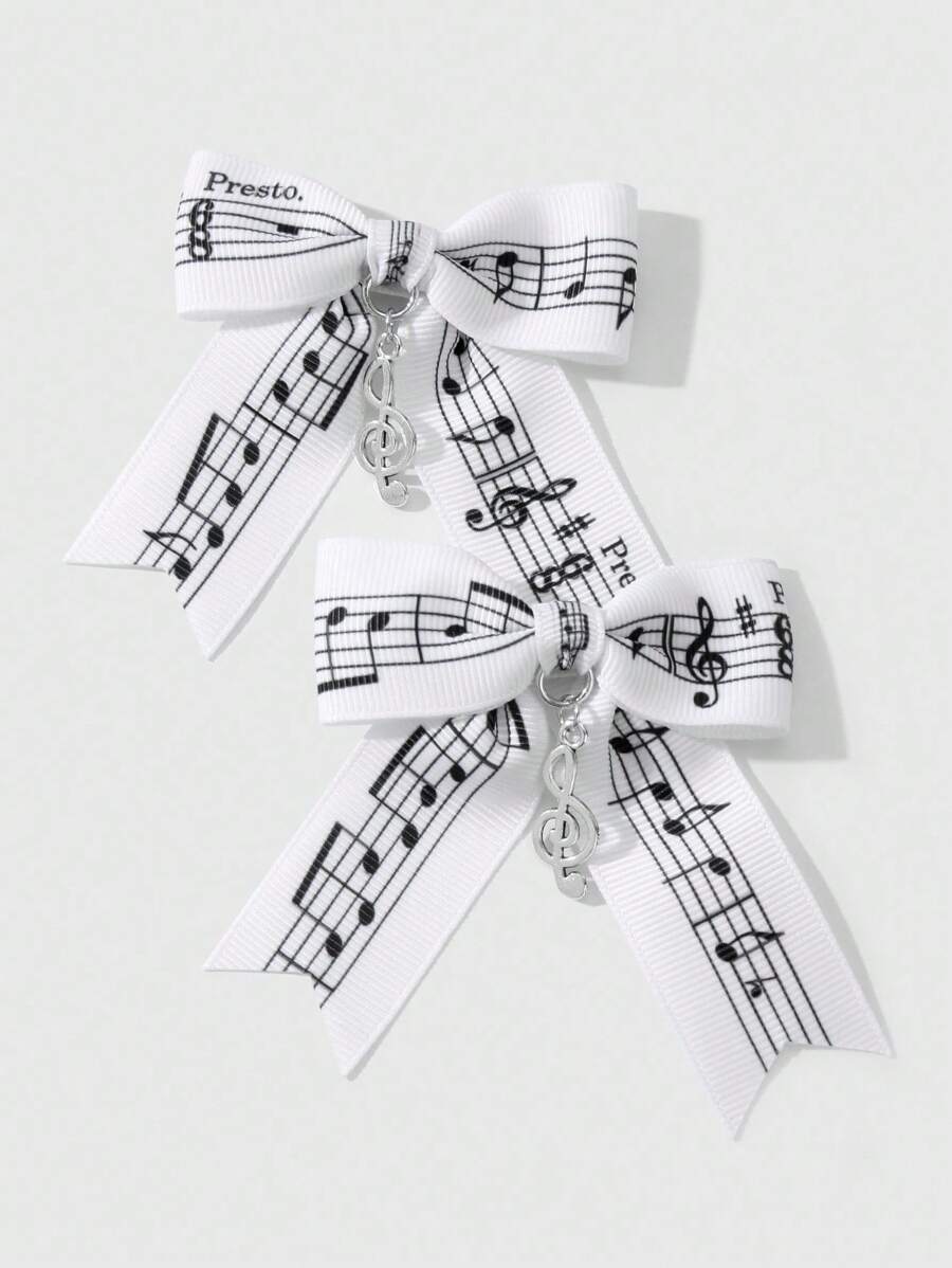 Kawaii 2pcs Minimalist Versatile Vintage Chic High-Quality Black & White Musical Note & Bowknot Pendant DIY Hair Clip, Side Clip Combo Set, Suitable For Women, Girls, Daily Wear, Holiday Gift
