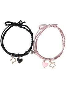 Kawaii 2pcs Summer Magnetic Couple Bracelets With Star, Heart And Butterfly Charm For Friendship, Couples, Valentine Gifts