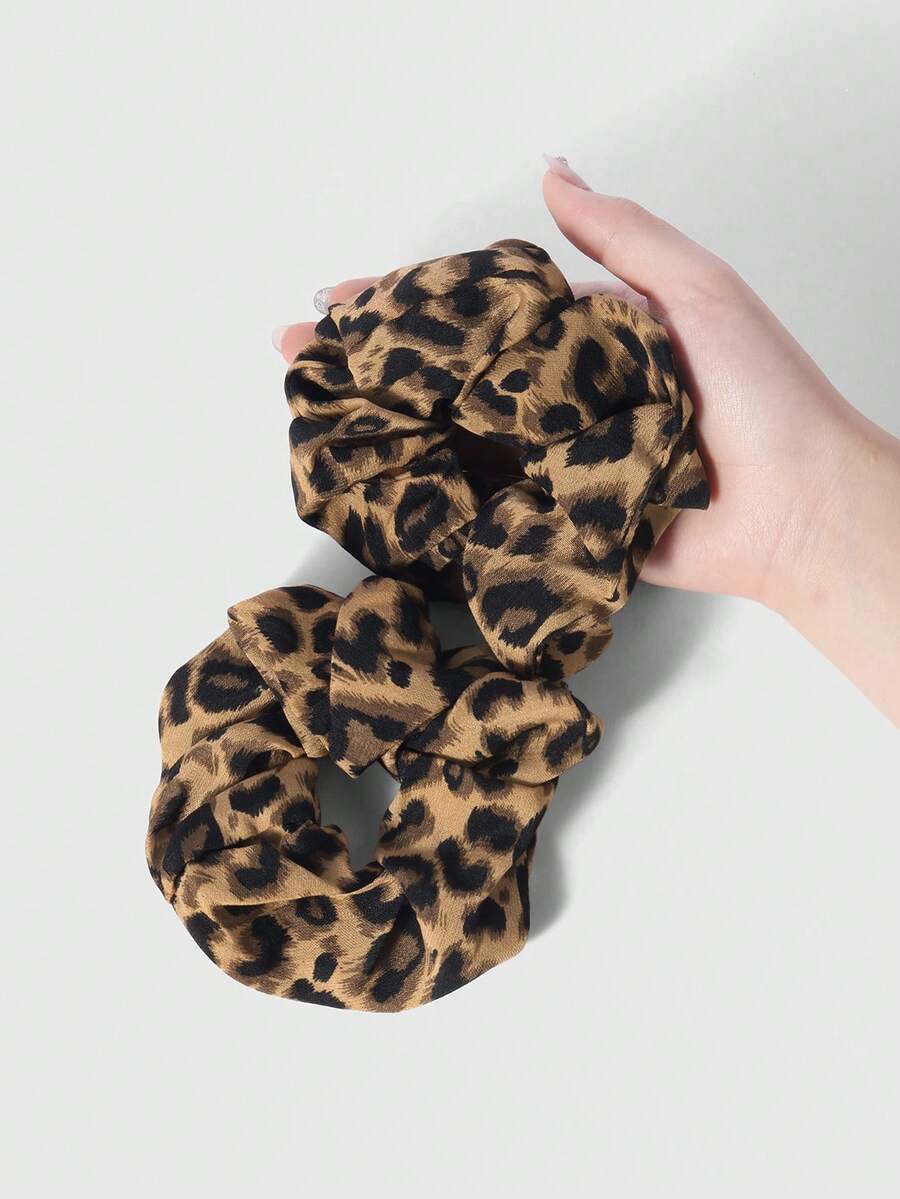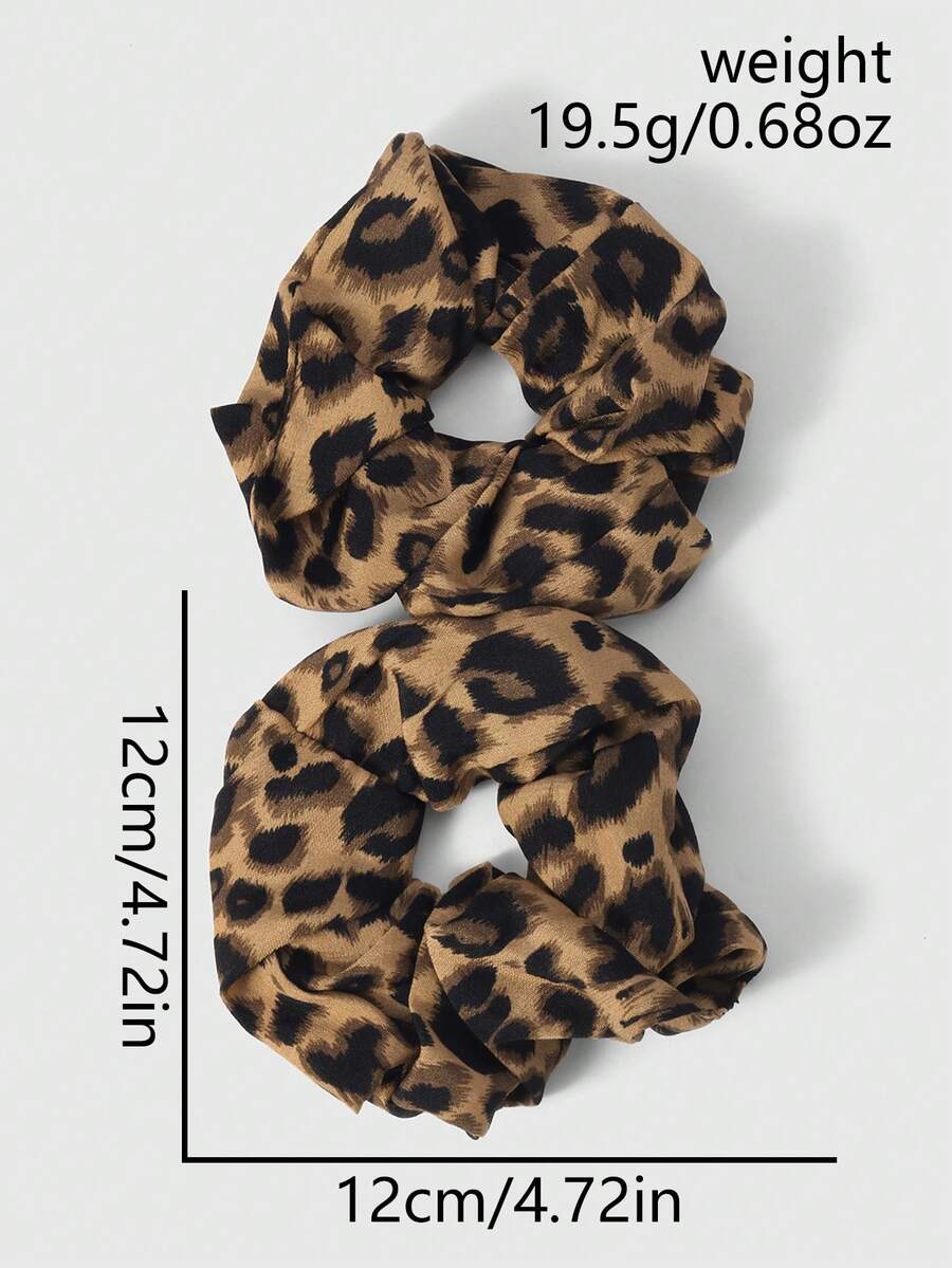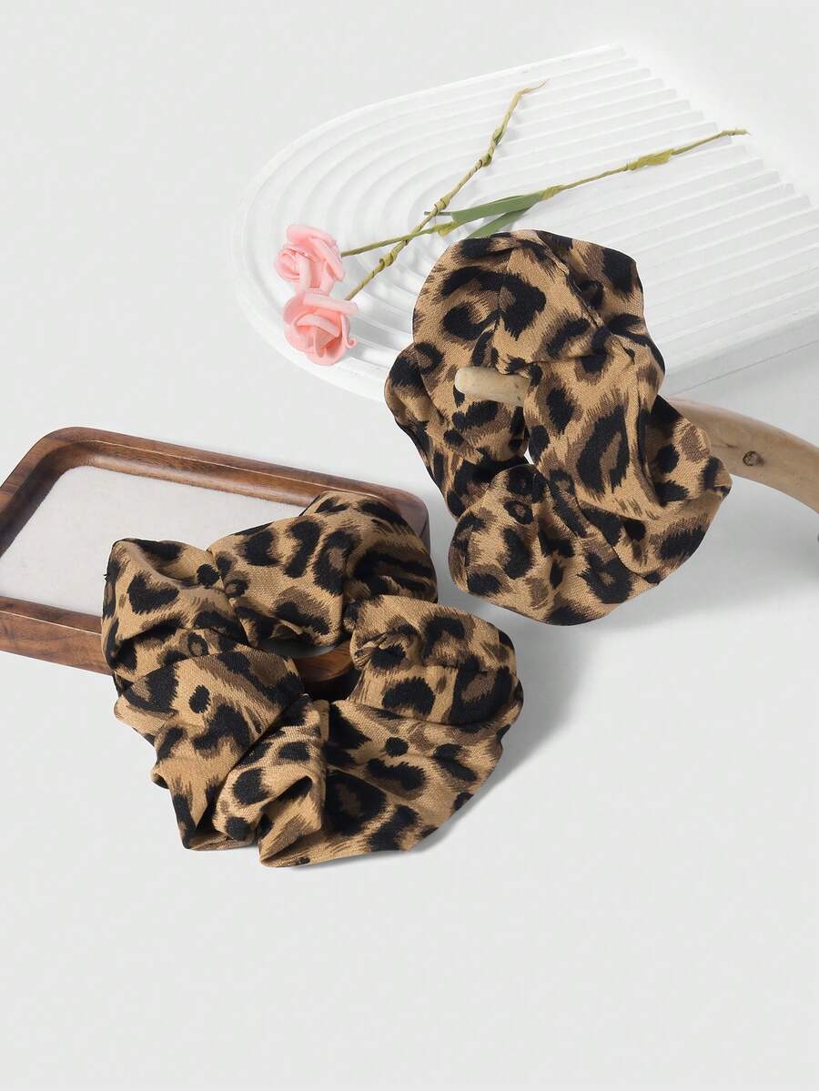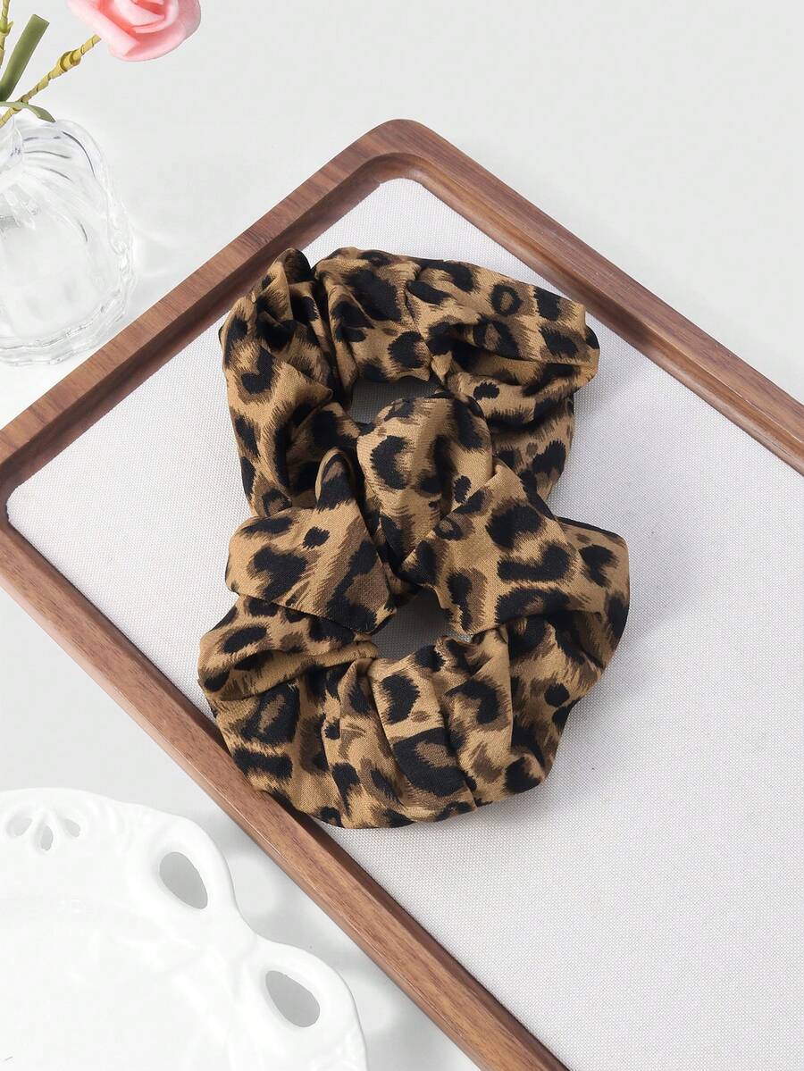 Kawaii 2pcs Vintage Chic Retro High-Quality Faux Leopard Print Hair Scrunchies, Elegant Ponytail Holder Set, Suitable For Women Daily Wear, Holiday Gift