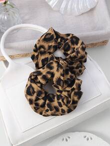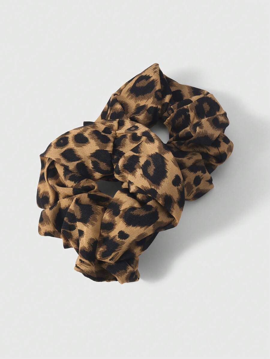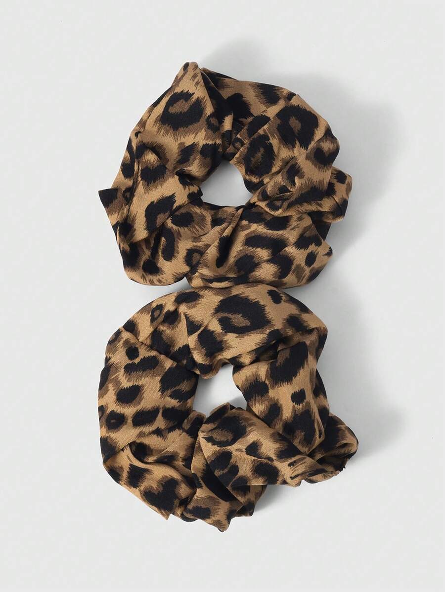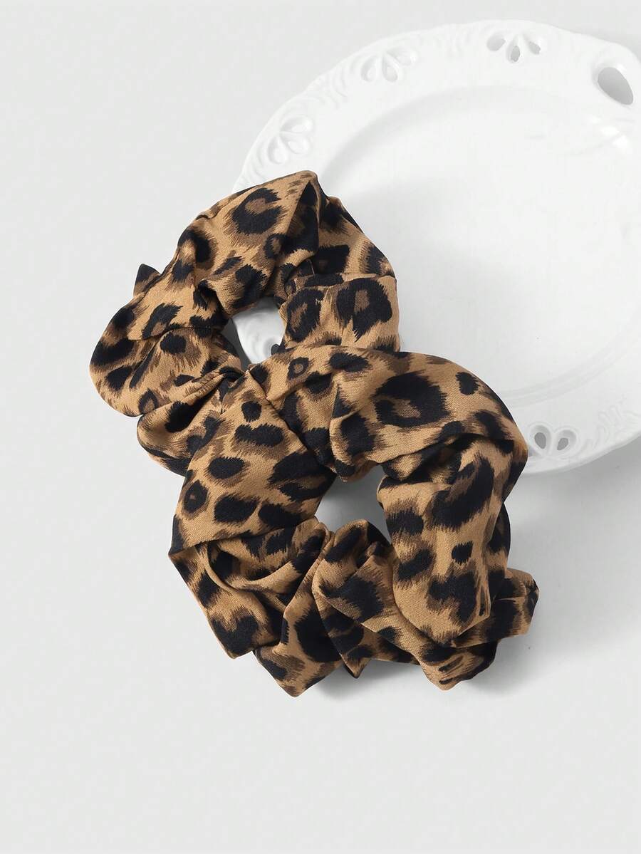 Kawaii 2pcs Vintage Chic Retro High-Quality Faux Leopard Print Hair Scrunchies, Elegant Ponytail Holder Set, Suitable For Women Daily Wear, Holiday Gift