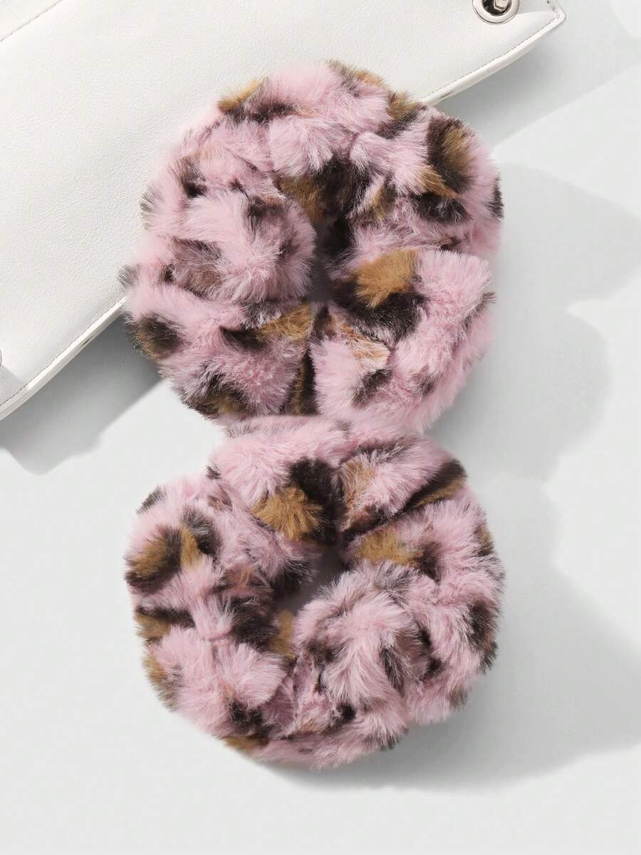 Kawaii 2pcs Y2K Retro Chic Leopard Print Fluffy Hair Scrunchies Set, Fashionable Accessories Suitable For Women, Girls, Daily Wear, Holiday Gift
