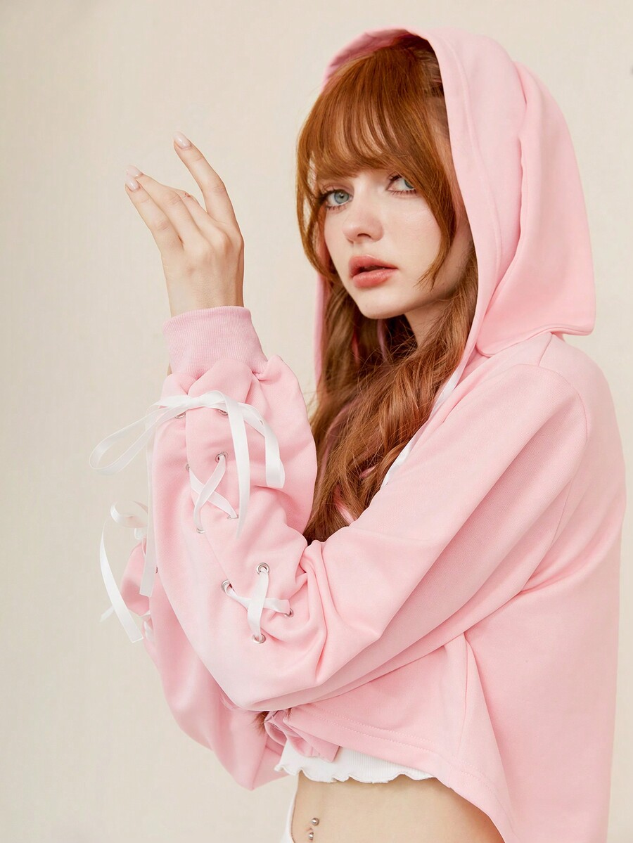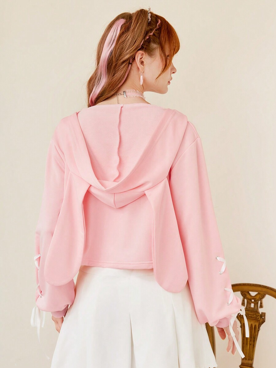 Kawaii 3D Ear Design Zip Up Drawstring Crop Hoodie