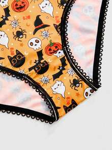 Kawaii 3pcs Halloween Dark Pumpkin, Ghost, Skeleton, Black Cat, Bat, Spider Web Print Comfortable Panties For Women
