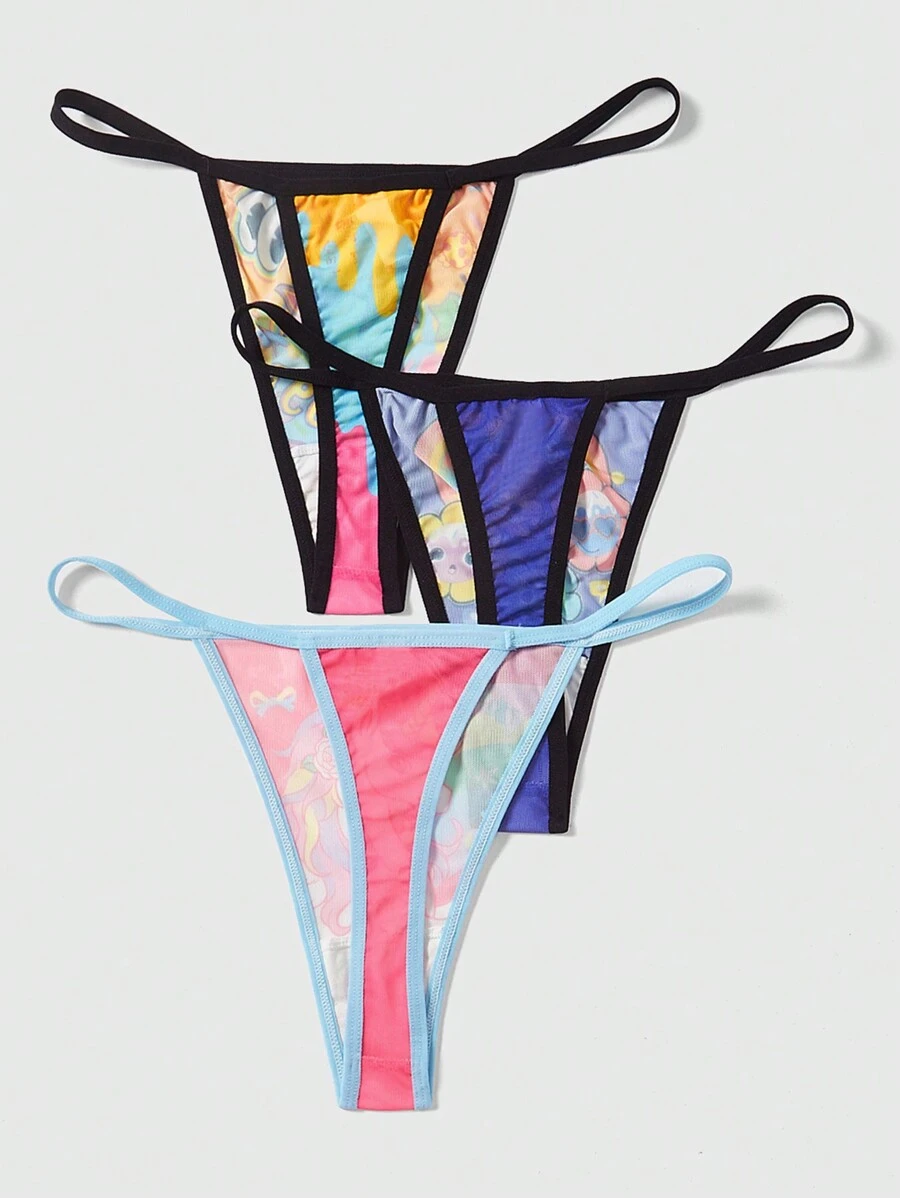 Kawaii 3pcs/Set Cartoon Printed Thong Underwear Set
