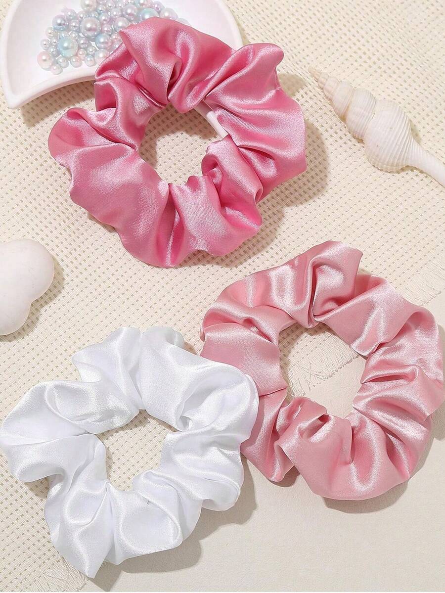 Kawaii 3pcs Solid Color Simulated Simple Fashion Women's Hair Ties Scrunchies, For Souvenirs