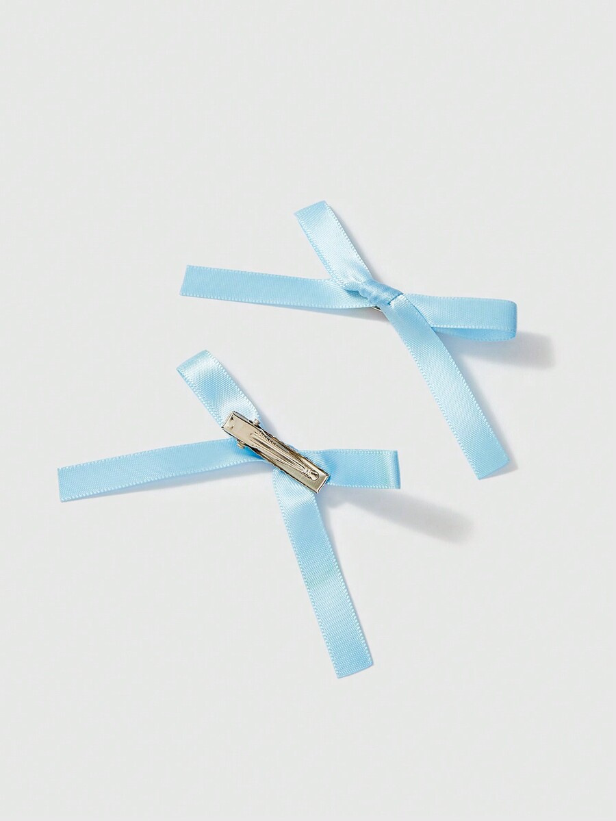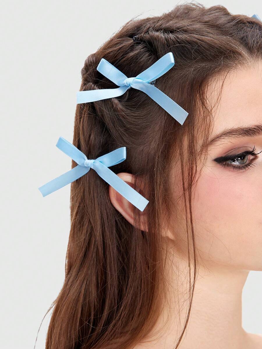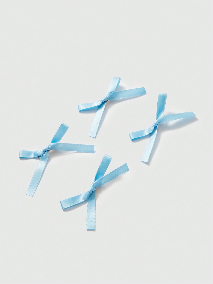 Kawaii 4pcs Blue Ribbon Bow Hair Clips, Fashionable Sweet Princess Style Hair Accessories, Daily Casual & Ballet Inspired Decorations