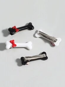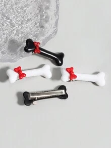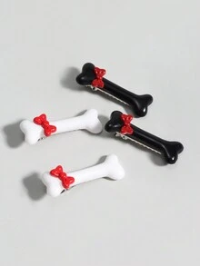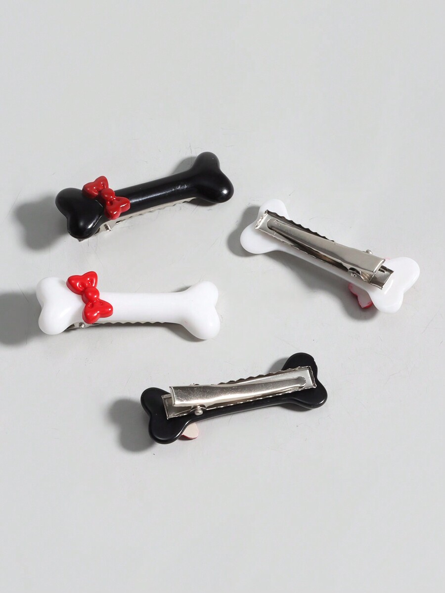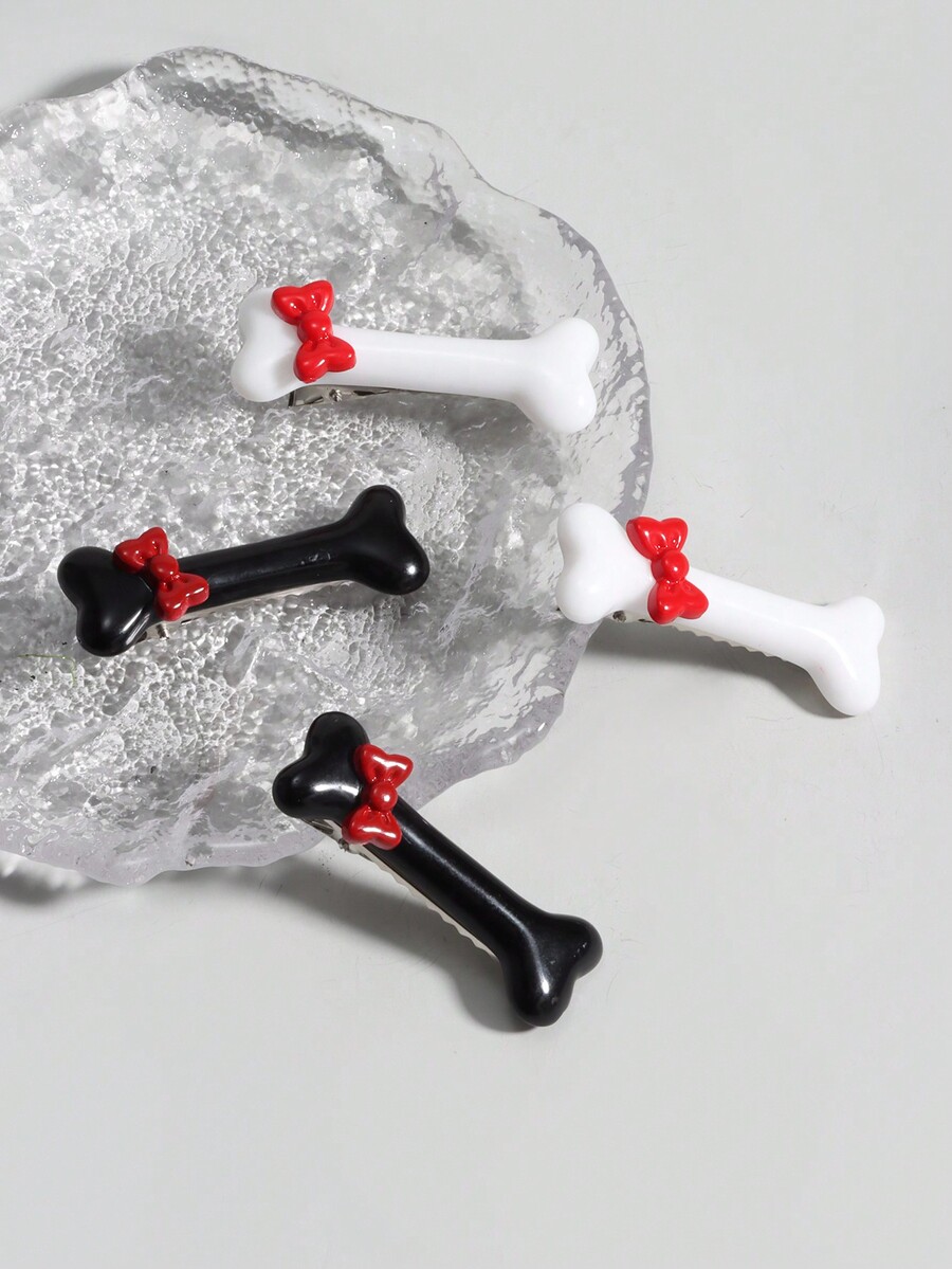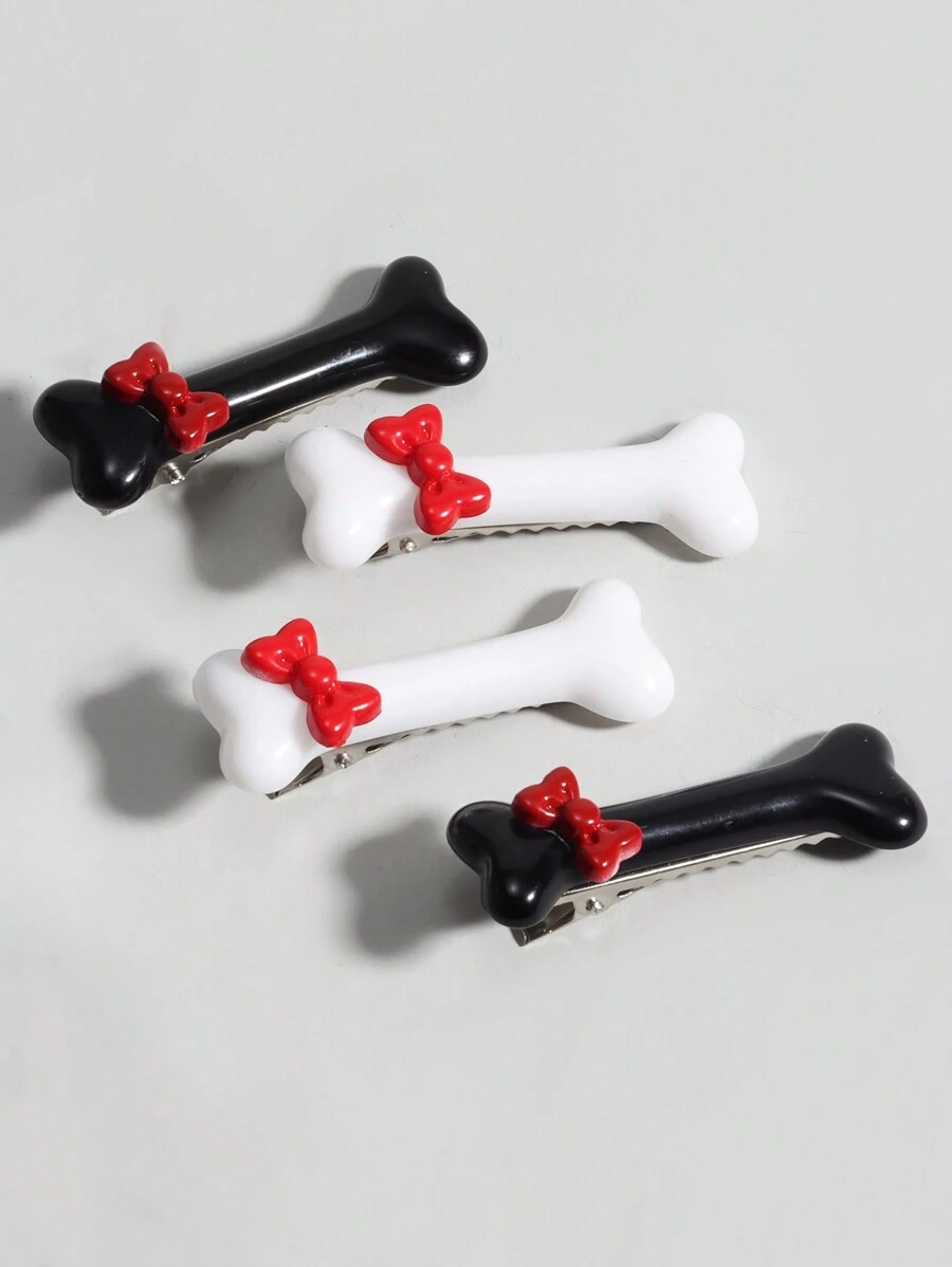 Kawaii 4pcs Halloween Black & White Bone Bow Hair Clips