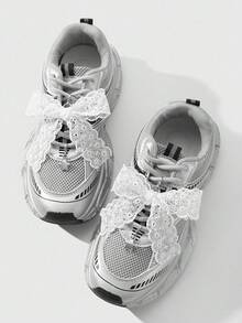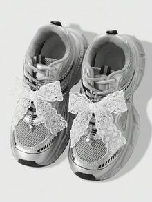 Kawaii 4pcs Minimalist Versatile Delicate Fashion High-Quality White Woven Ribbon, Hollow Lace Bow, Star Shoe Clips Decorative Set, Suitable For Women, Girls, Daily Wear, Holiday Gifts