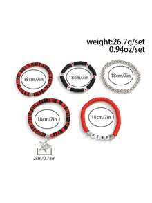 Kawaii 5pcs Fashionable Strawberry Pendant Crystal Beaded Bracelet Set, Sweet & Lovely For Women, Great For Friends And Valentine's Day Gifts,Mom,Mother,Mother's Day,Gift
