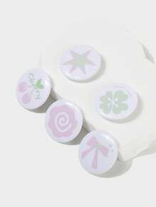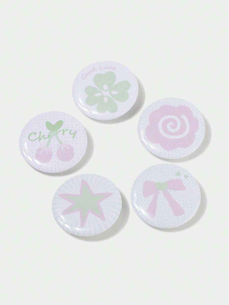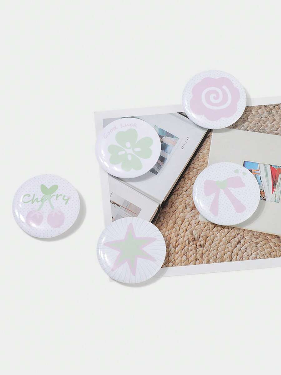 Kawaii 6pcs Anime Badges With Flower, Wings, Music Notes, Polka Dots, And Stars Design