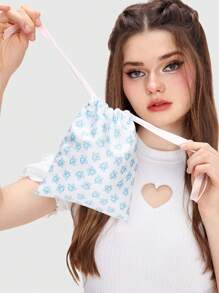 Kawaii Allover Print Bowknot Drawstring Cosmetic Bag, Portable Storage Pouch