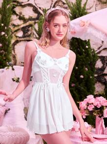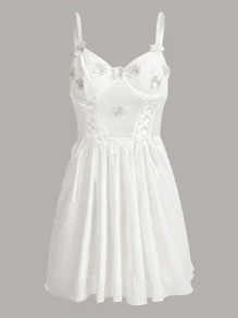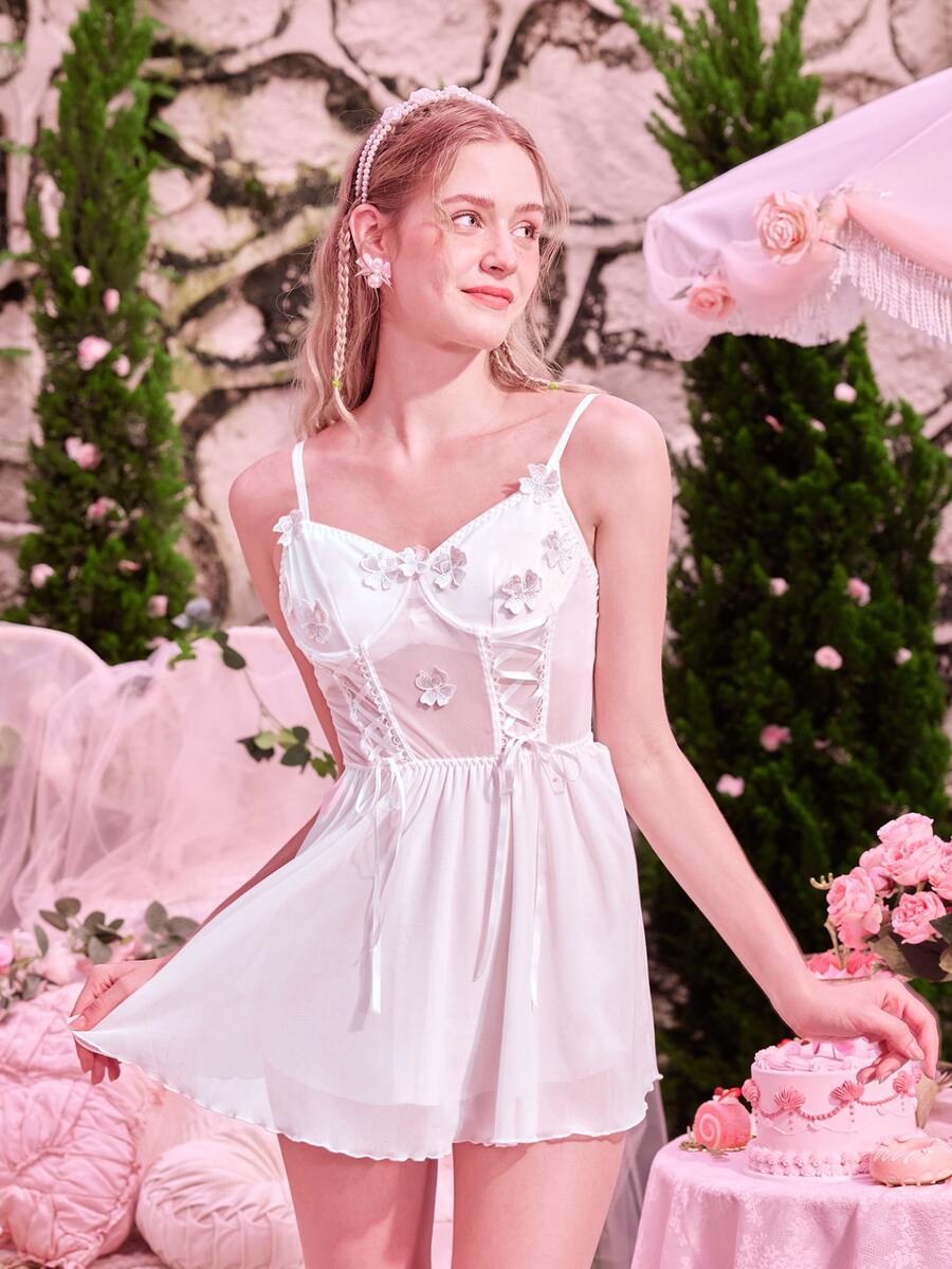 Kawaii Appliques Lace Up Babydoll