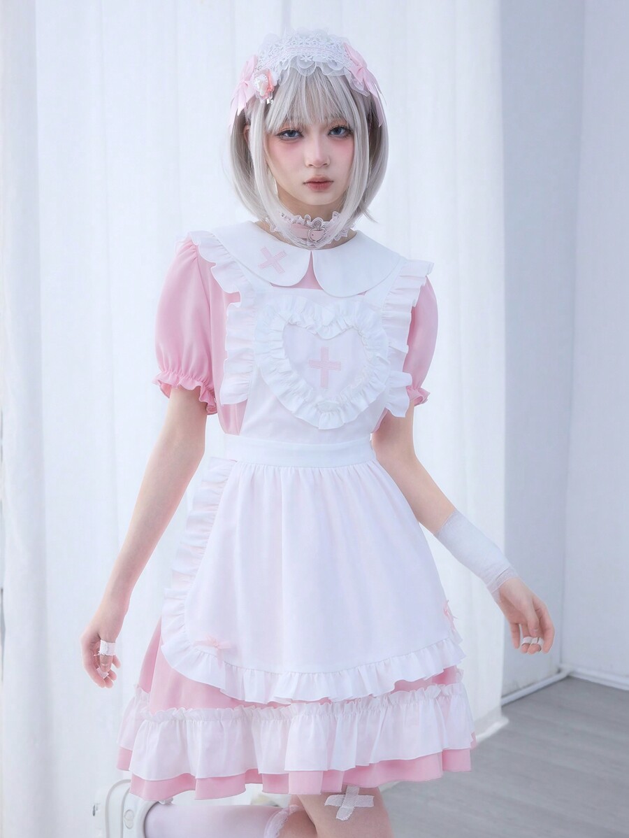 Kawaii Babydoll Maid Cosplay Cute Doll Sleeve Women Mini Dress