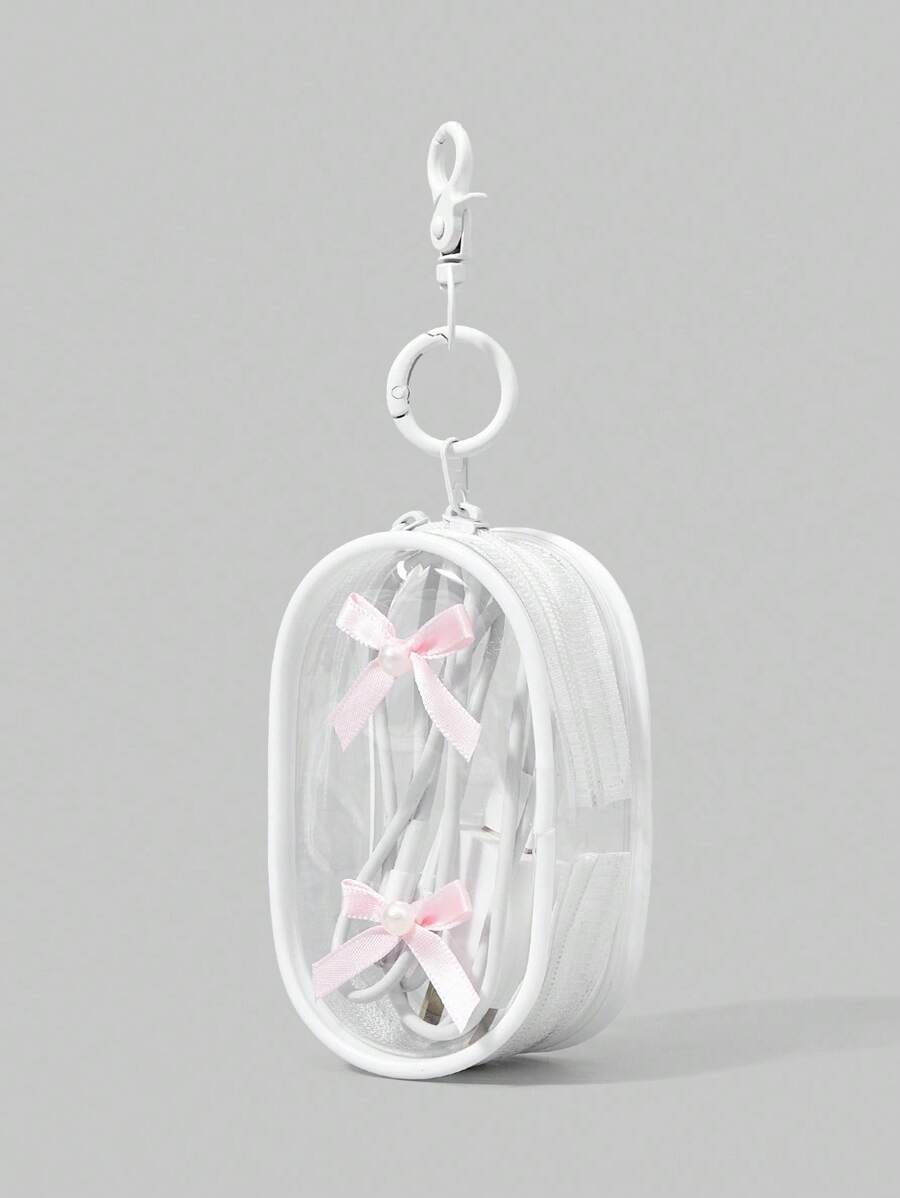 Kawaii Bow Decor Portable Travel Organizer Transparent Storage Pouch