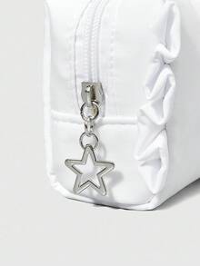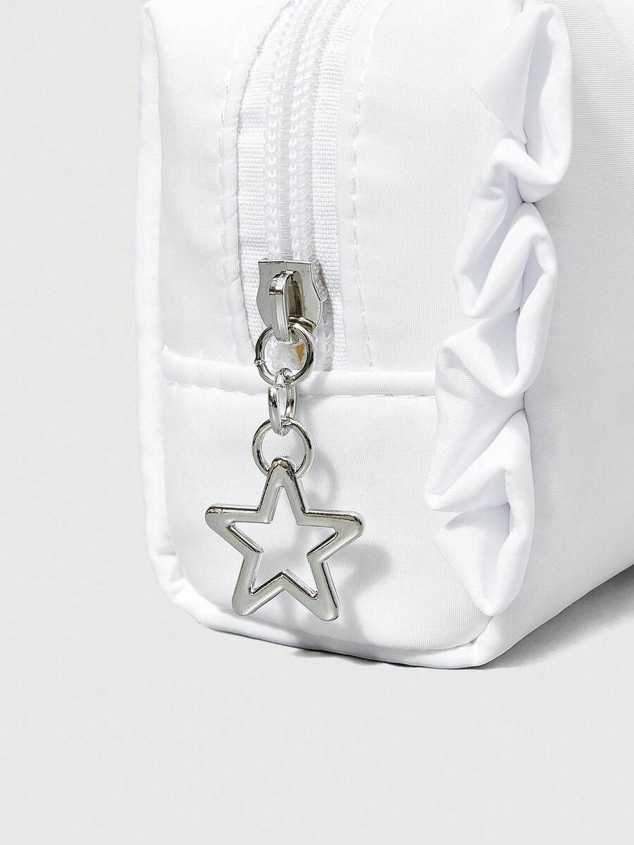 Kawaii Bow Embroidery Cute Ruffle Trim Portable Cosmetic Bag