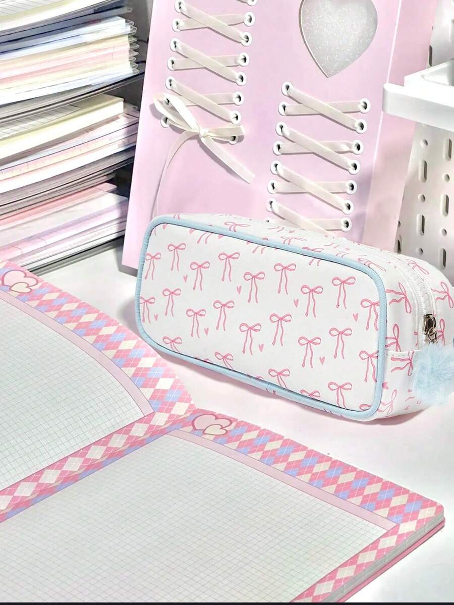 Kawaii Butterfly Embroidered Large Capacity Portable Cosmetic Bag, For Back To School