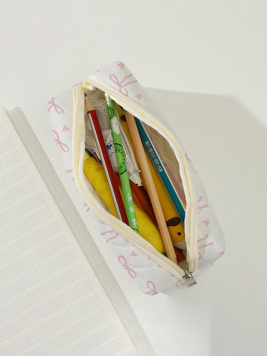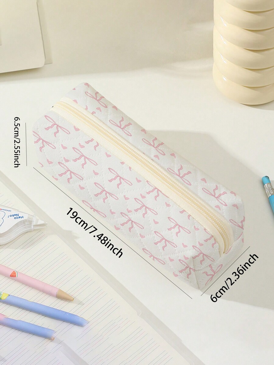 Kawaii Butterfly & Heart Pattern Quilted Zipper Pencil Case, Cosmetic Bag, Coin Purse