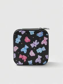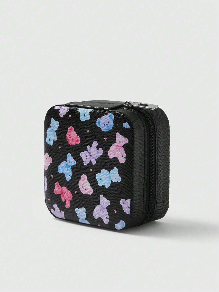 Kawaii Cartoon Bear Printed Black Jewelry Box For Drawing