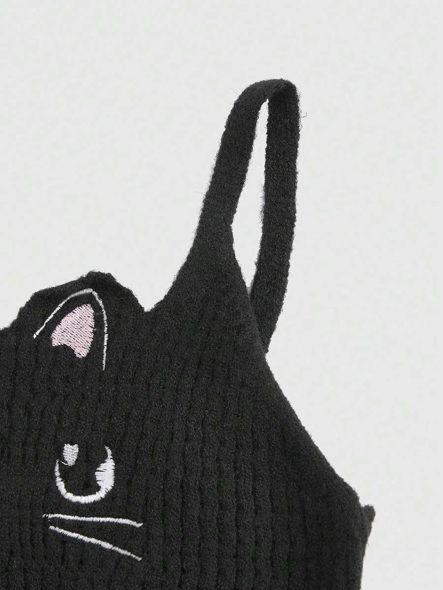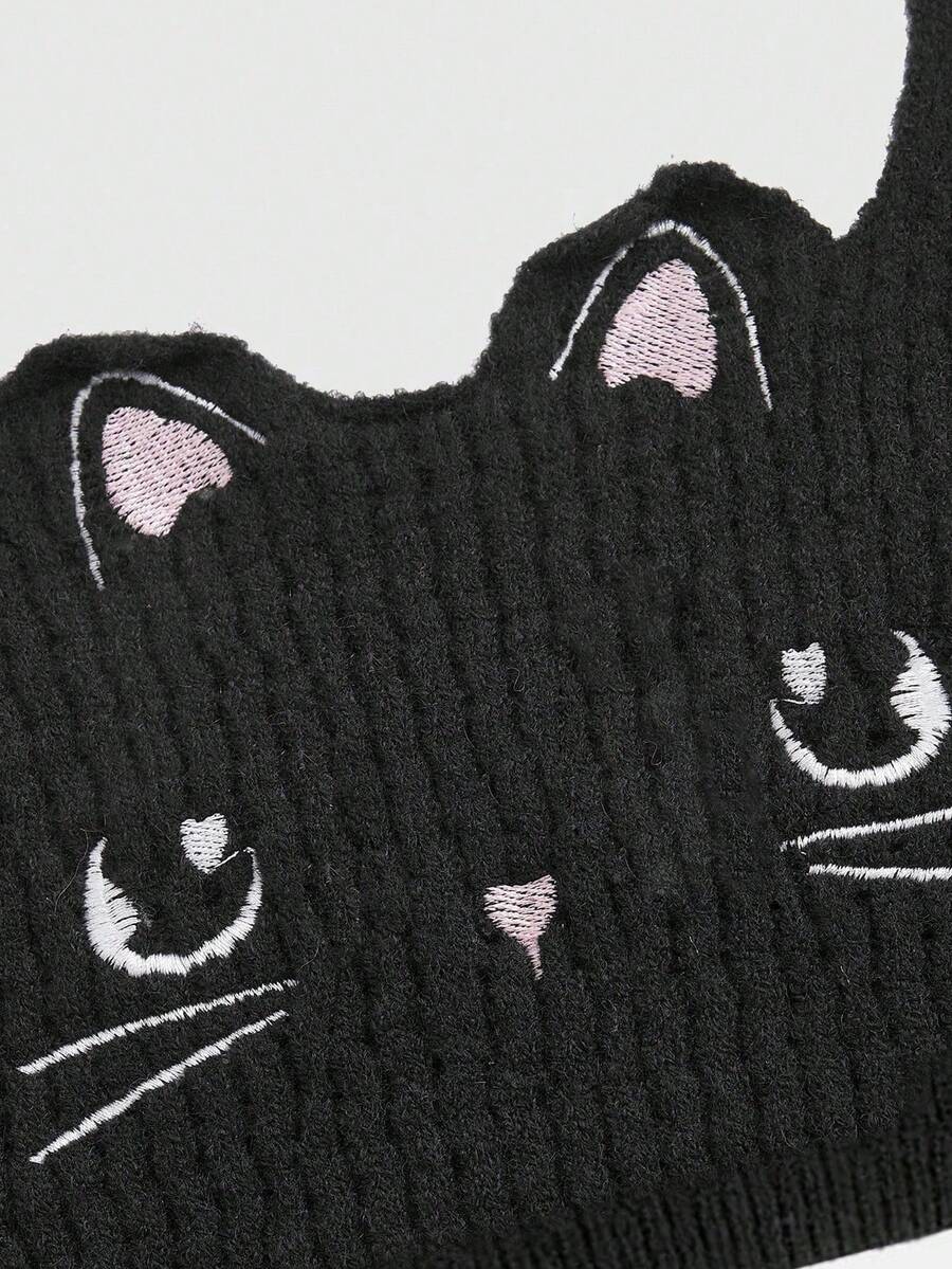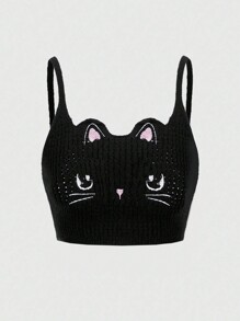 Kawaii Cartoon Cat Embroidery Knit Tank Top