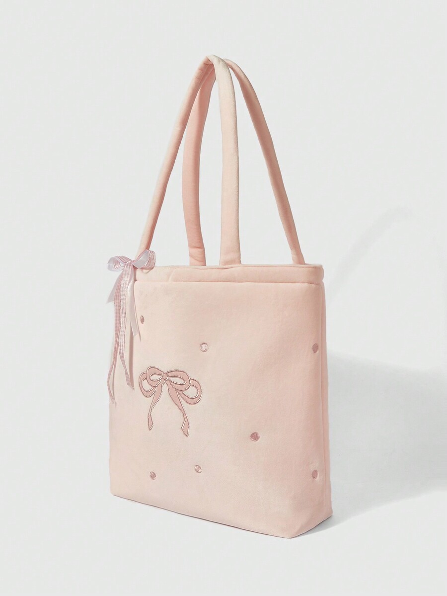Kawaii Cartoon Fashion Large Capacity Bow Pattern Durable Portable Plush Tote Bag For Women