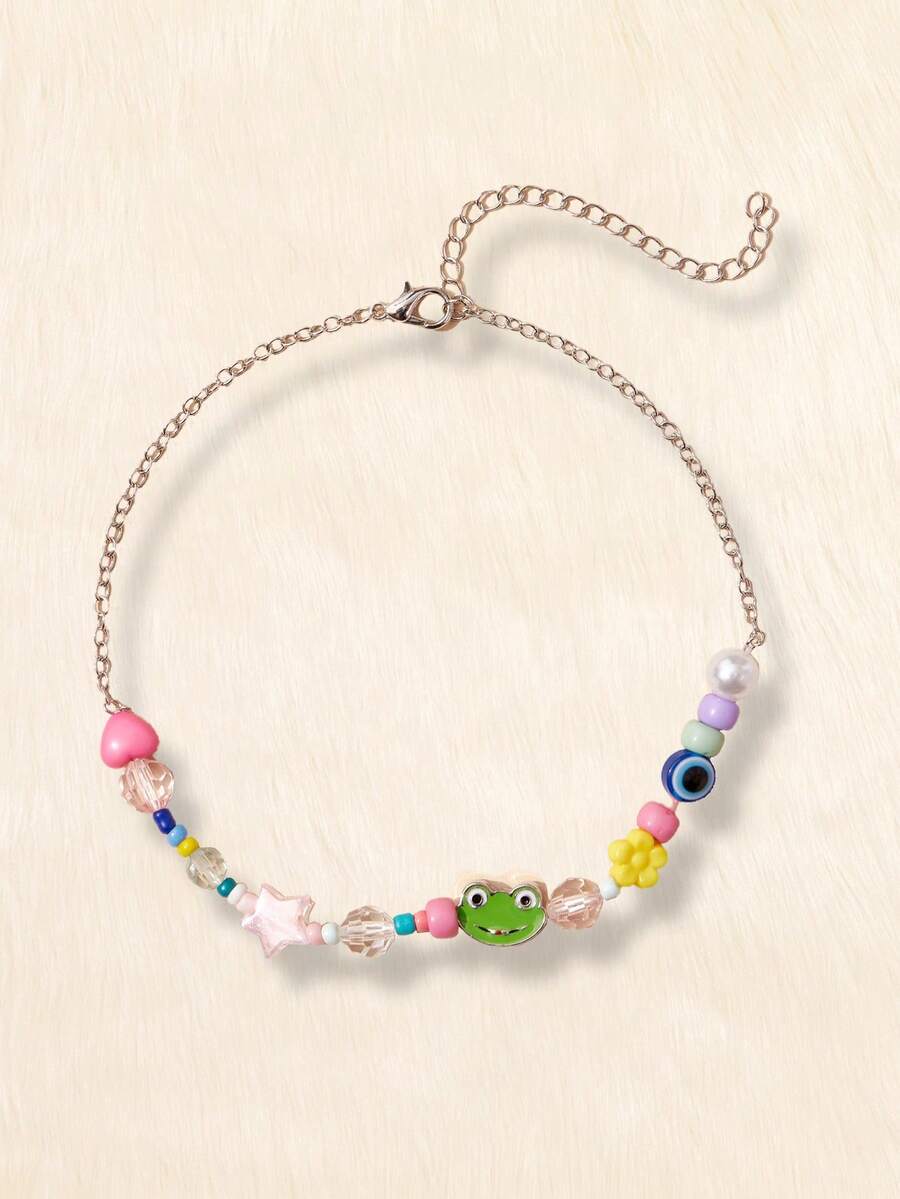Kawaii Cartoon Frog & Heart Decor Beaded Necklace