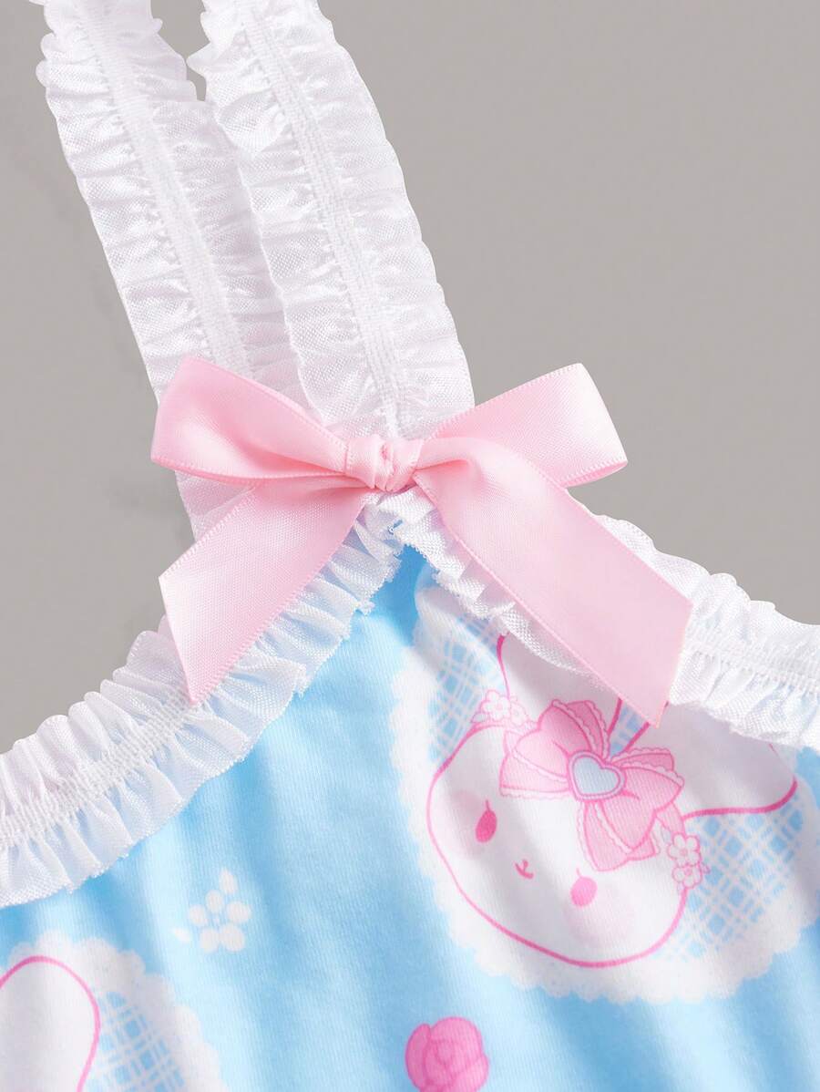 Kawaii Cartoon Graphic Contrast Lace PJ Set