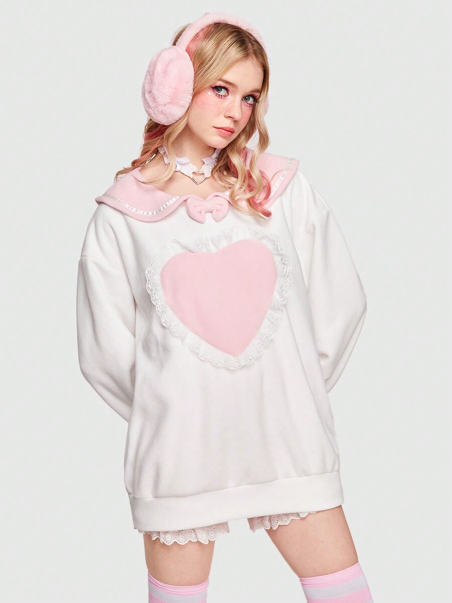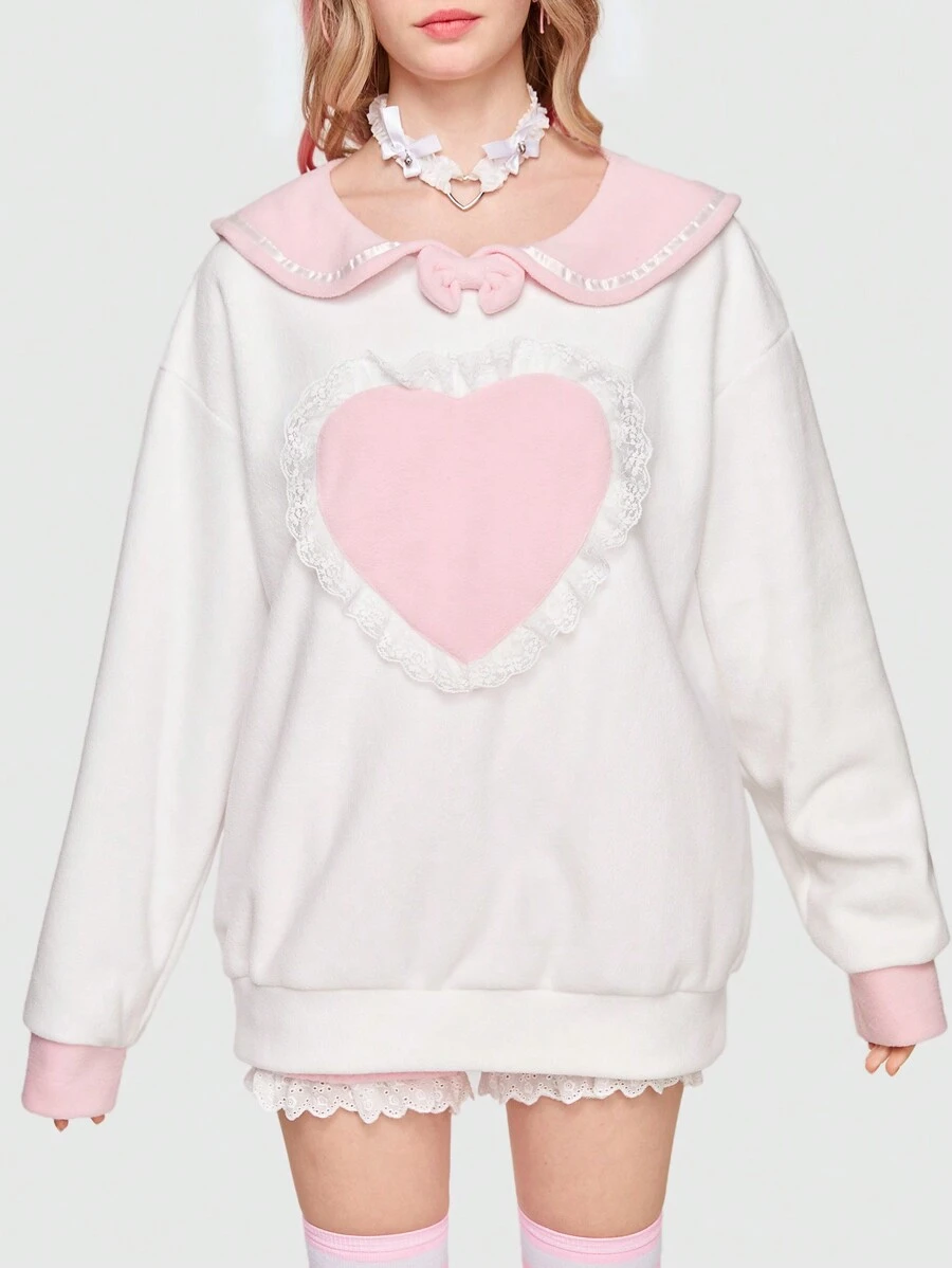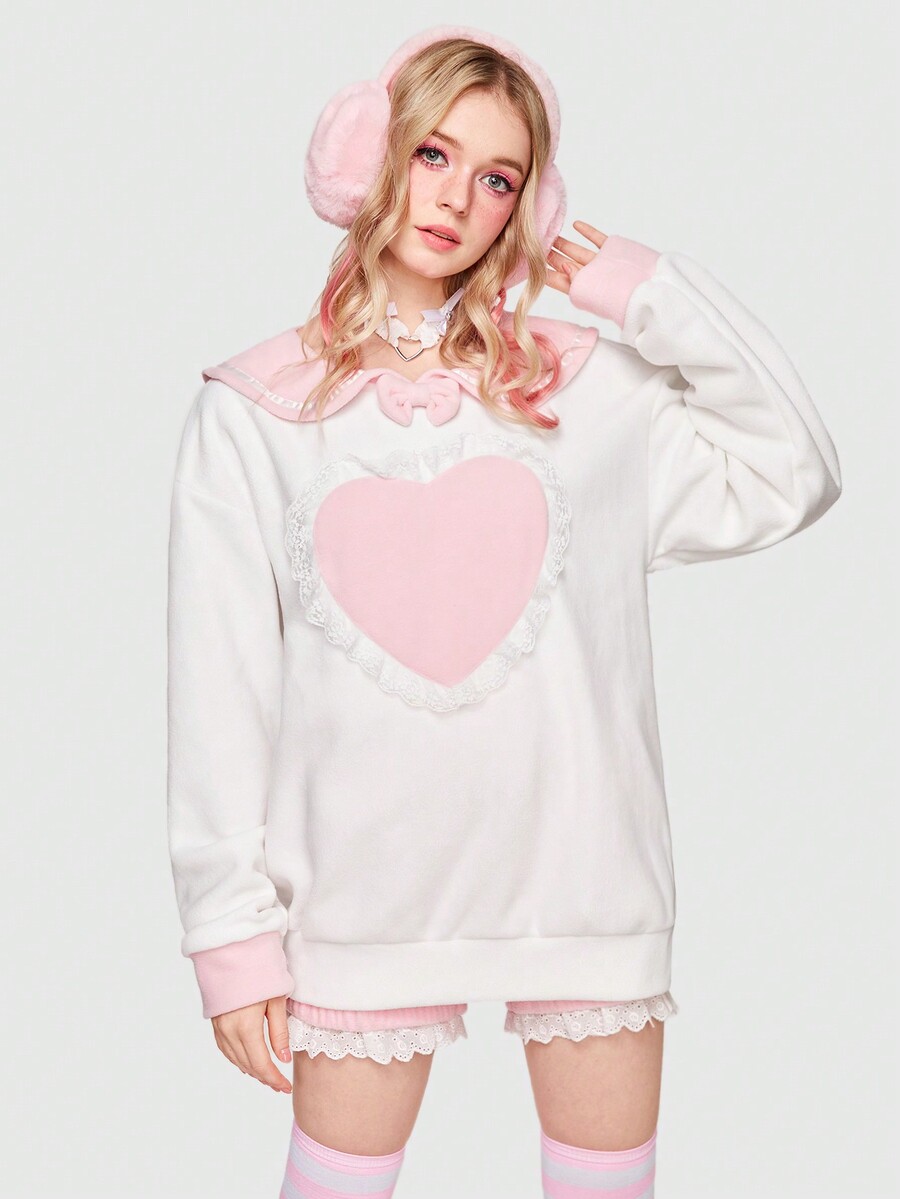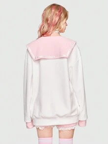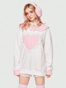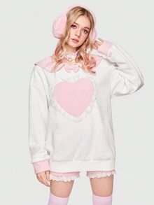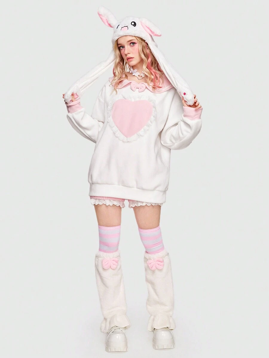 Kawaii Cartoon Graphic Drop Shoulder 3D Ear Design Hoodie