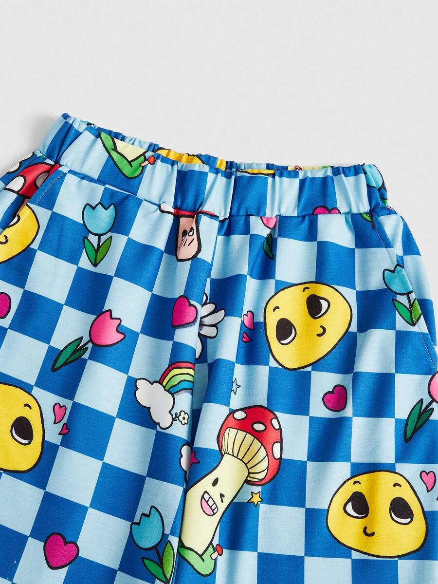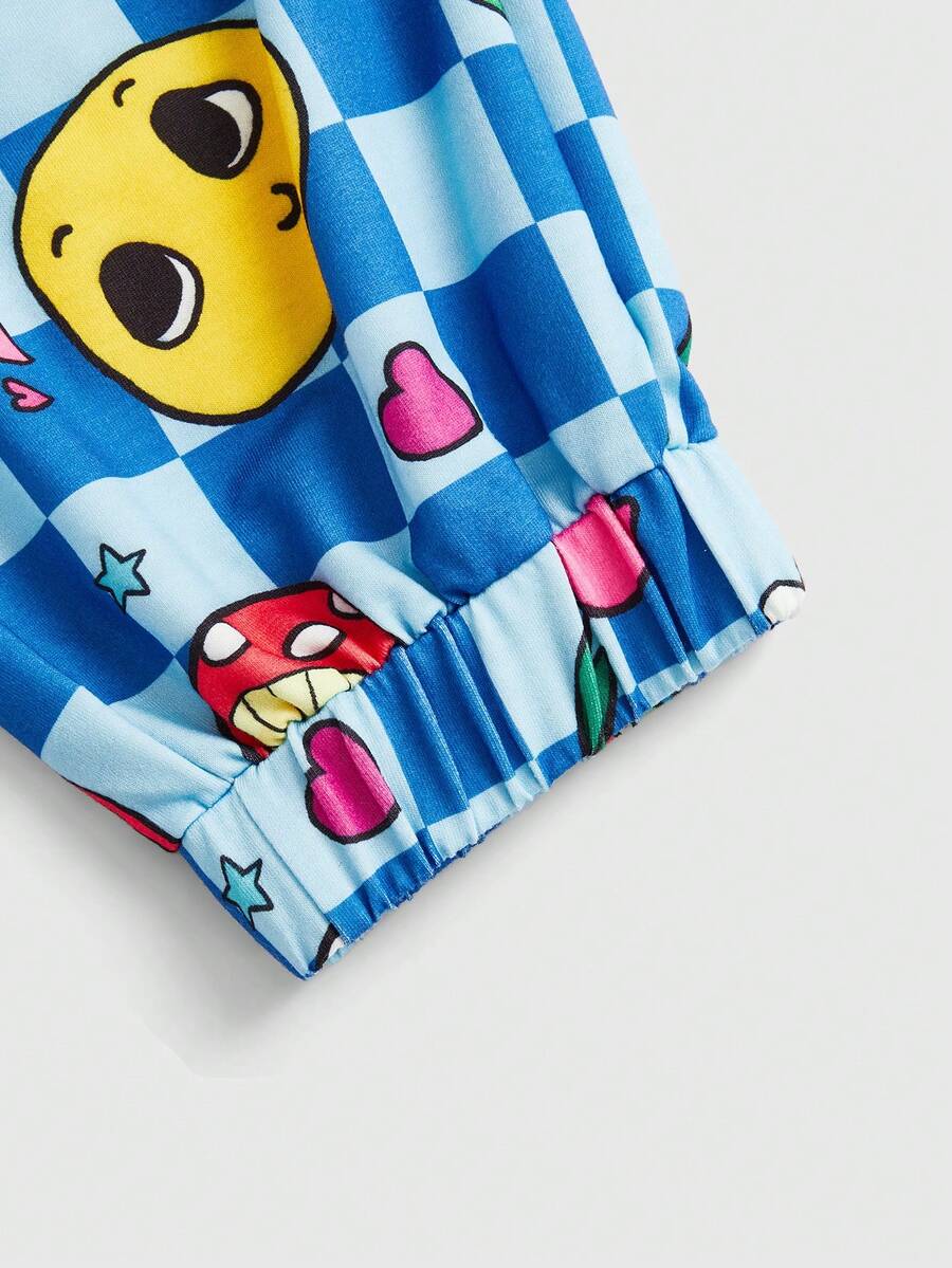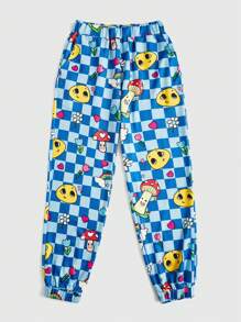 Kawaii Checkerboard & Cartoon Graphic Pants