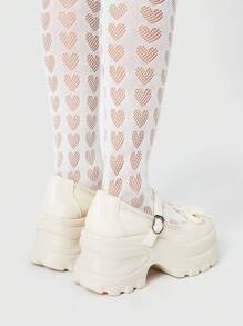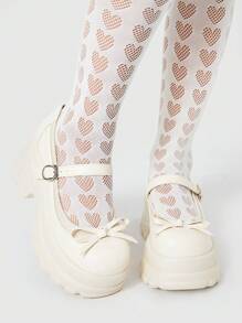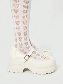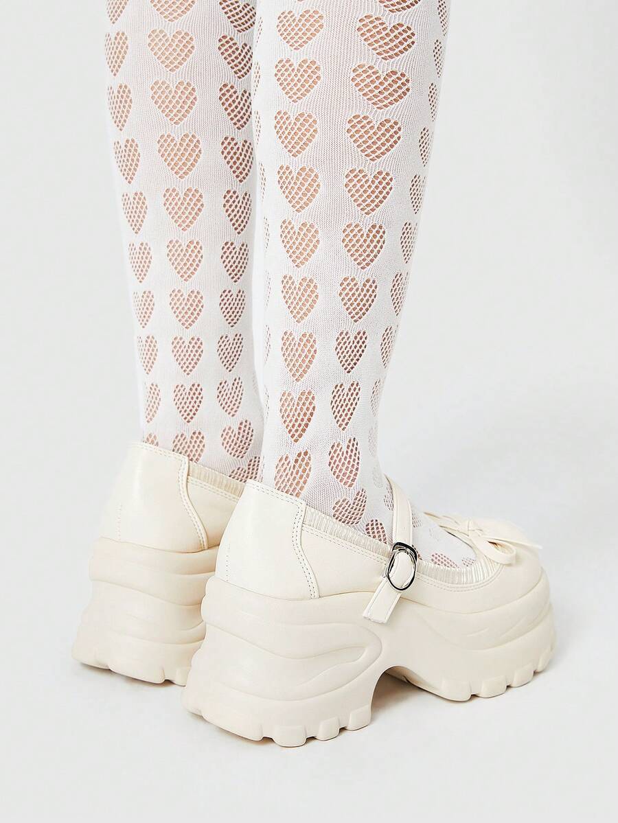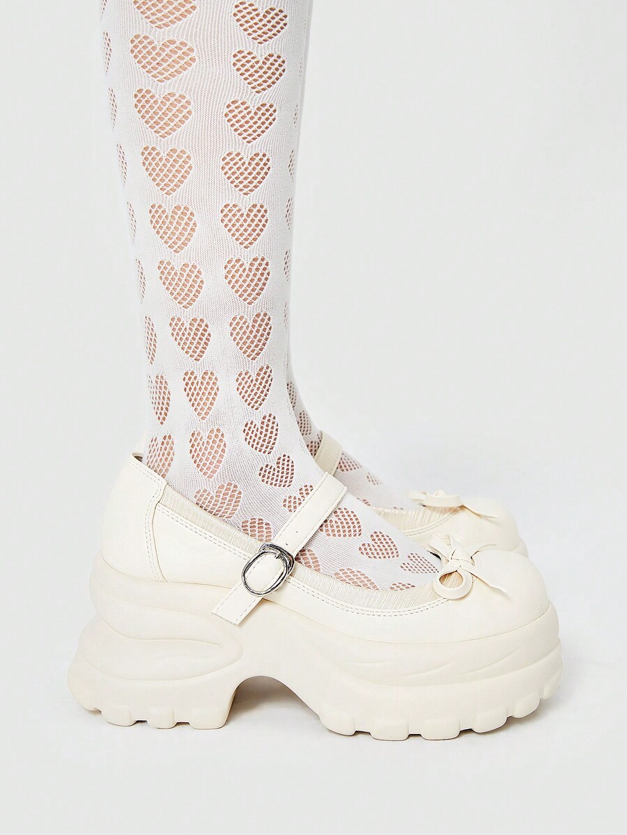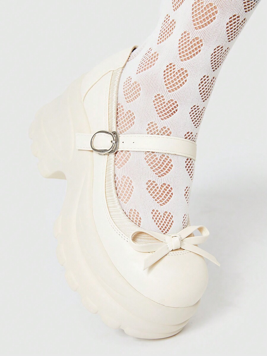 Kawaii Comfortable Platform Shoes With Bow Decor, Round Toe, Cute & Punk Style, Daily/School Wear, Beige For Christmas And New Year Holiday Vibe Fall And Winter
