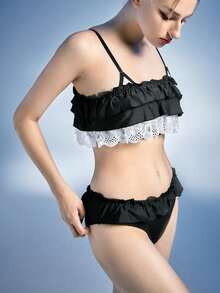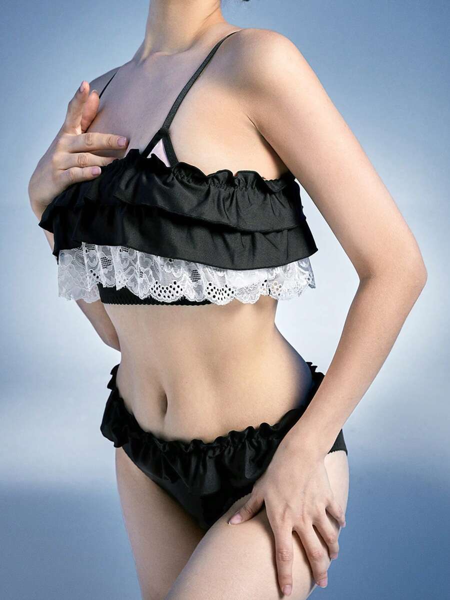 Kawaii Contrast Lace Ruffle Lingerie Set