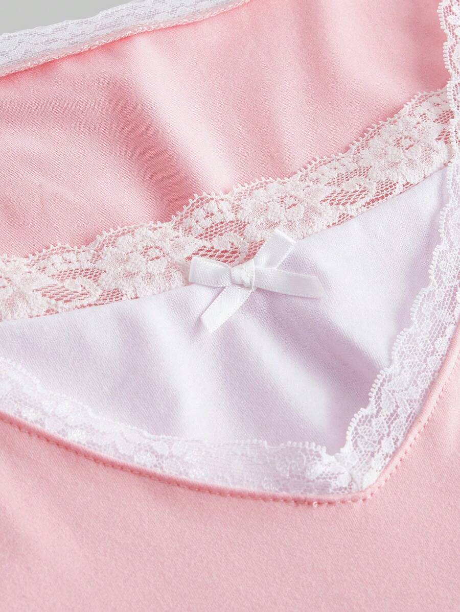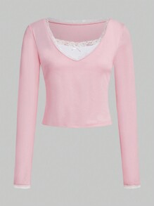 Kawaii Cute And Sweet Lace Trim Color Block Long Sleeve T-Shirt