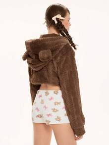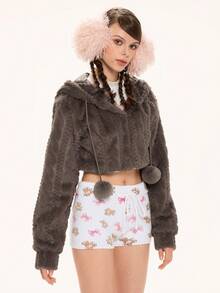 Kawaii Cute Bear Ear Hooded Fuzzy Ball Short Jacket