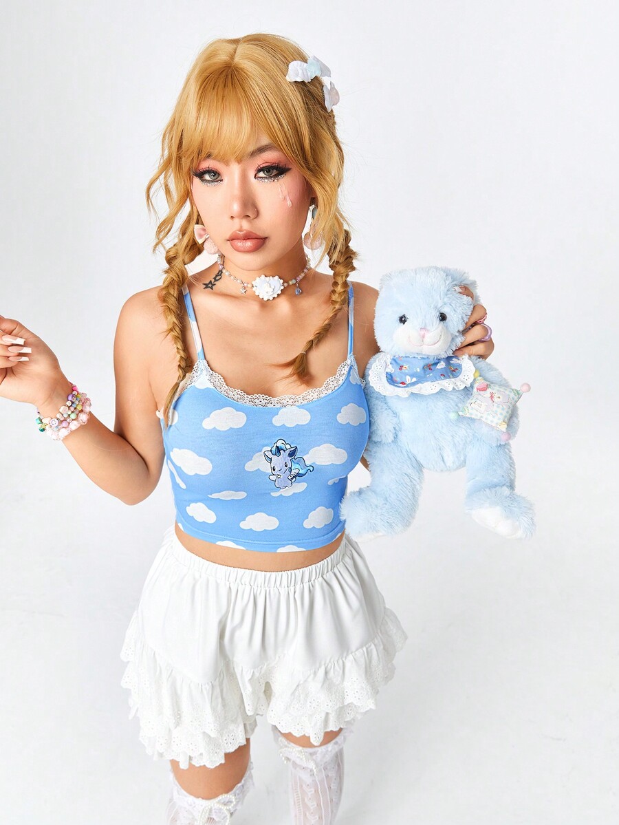 Kawaii Cute Cartoon Cloud & Embroidered Women's Tank Top
