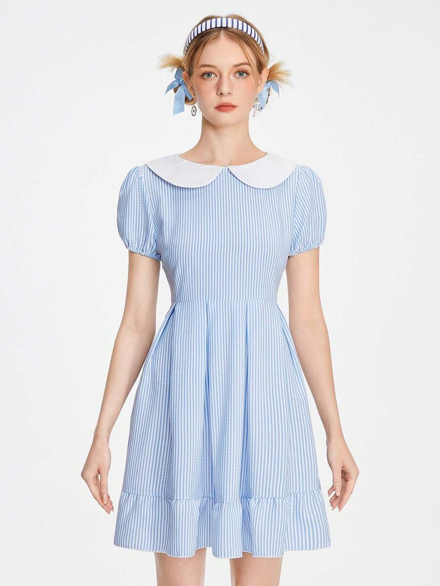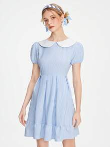 Kawaii Cute Casual Peter Pan Collar Striped Dress For Women