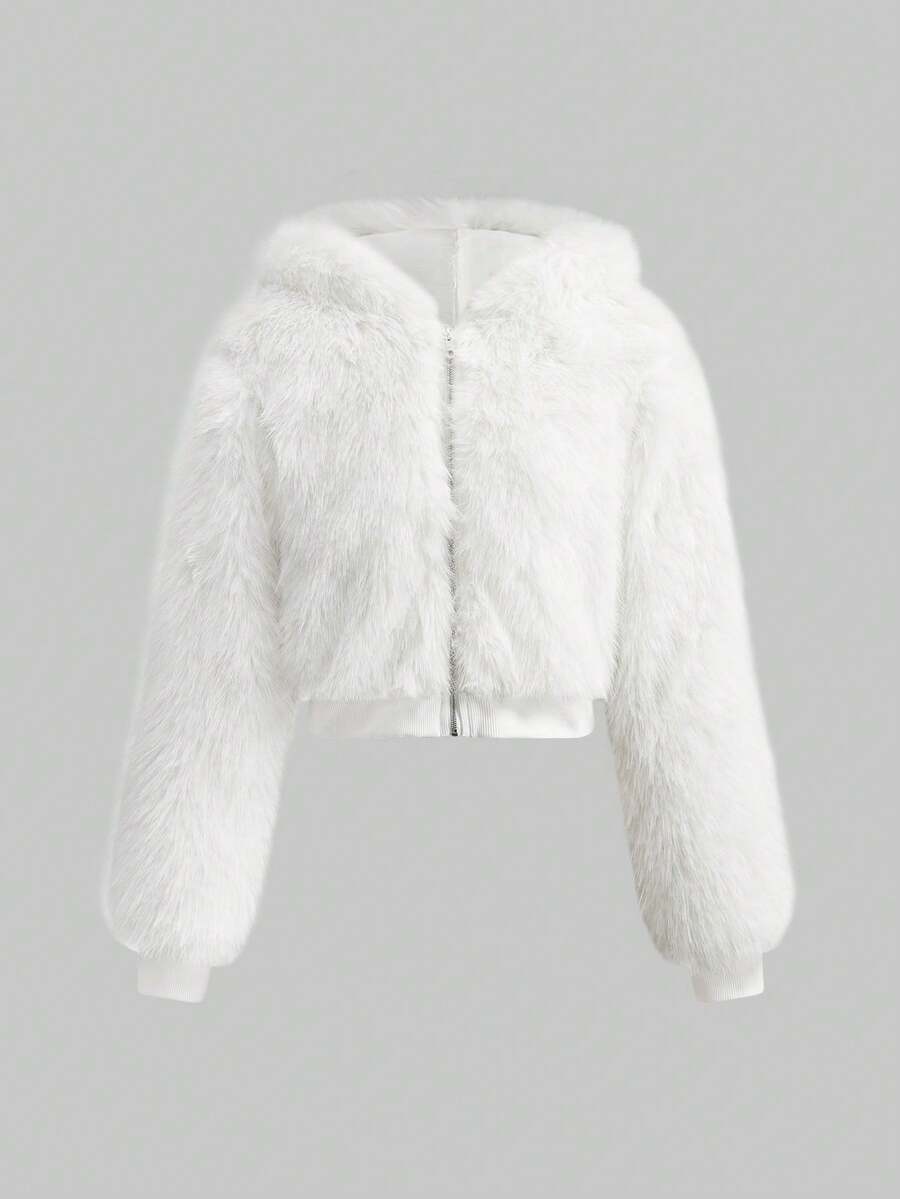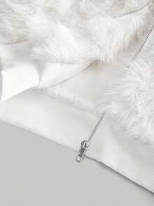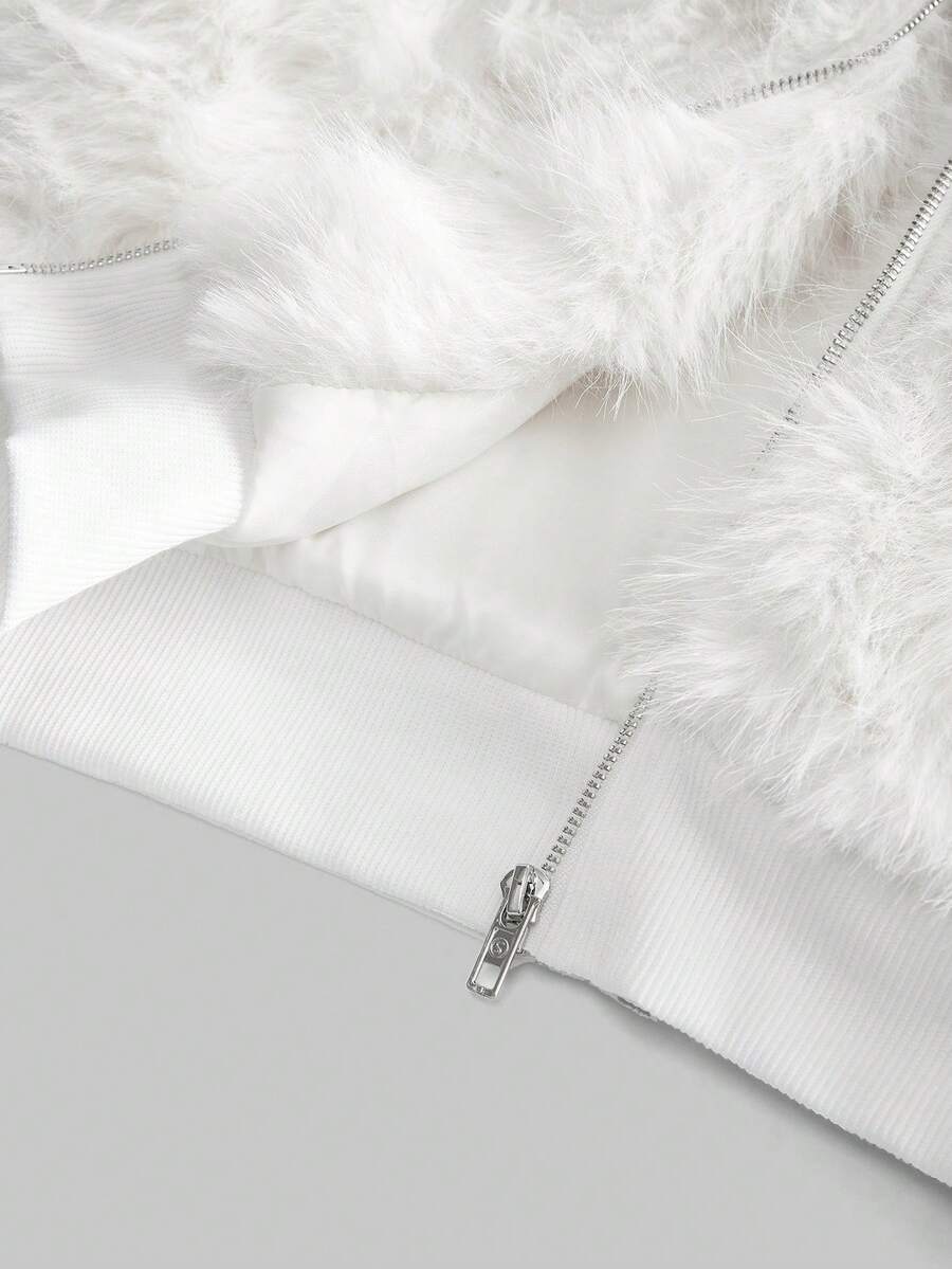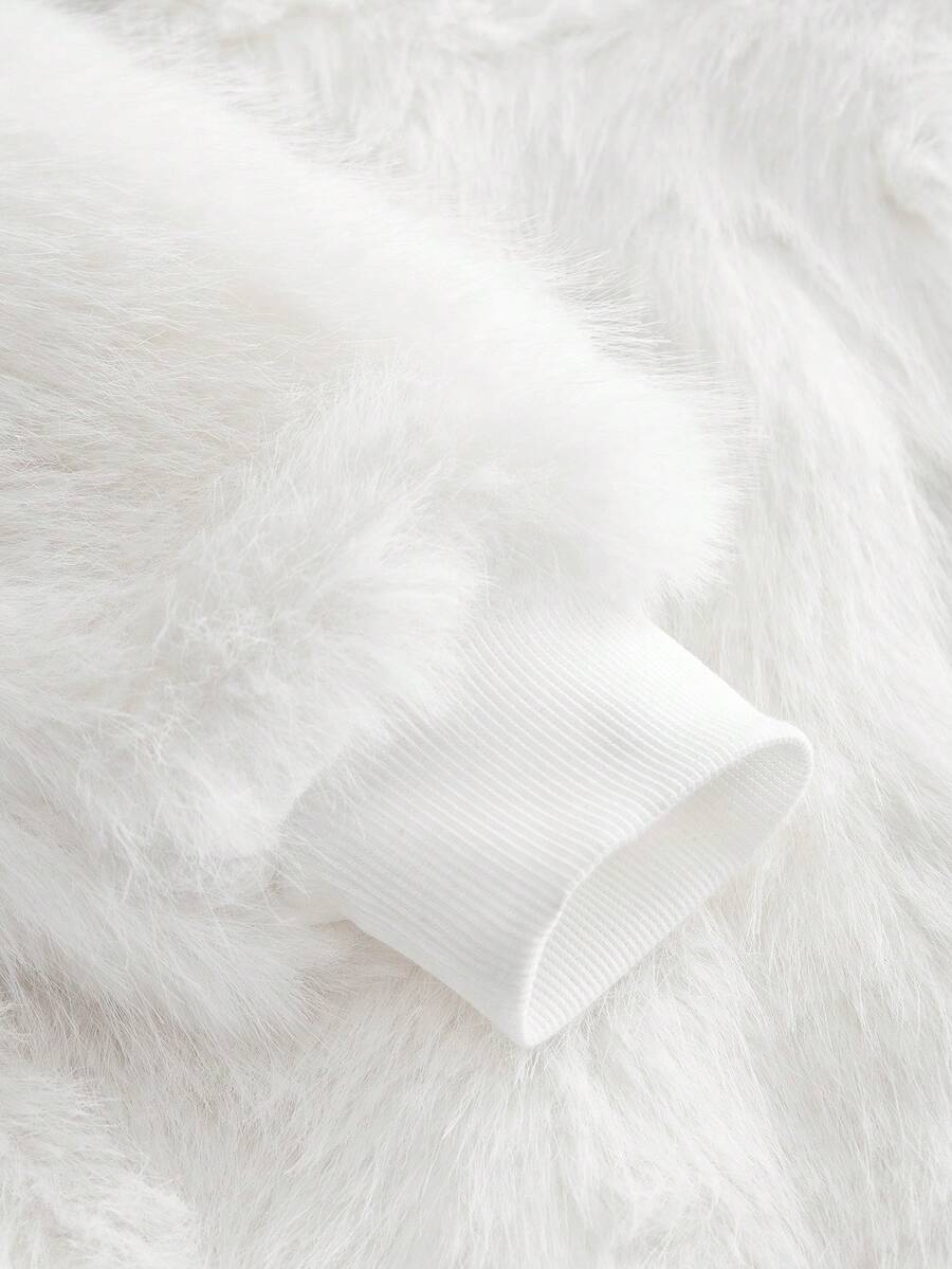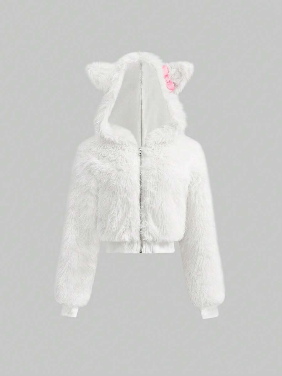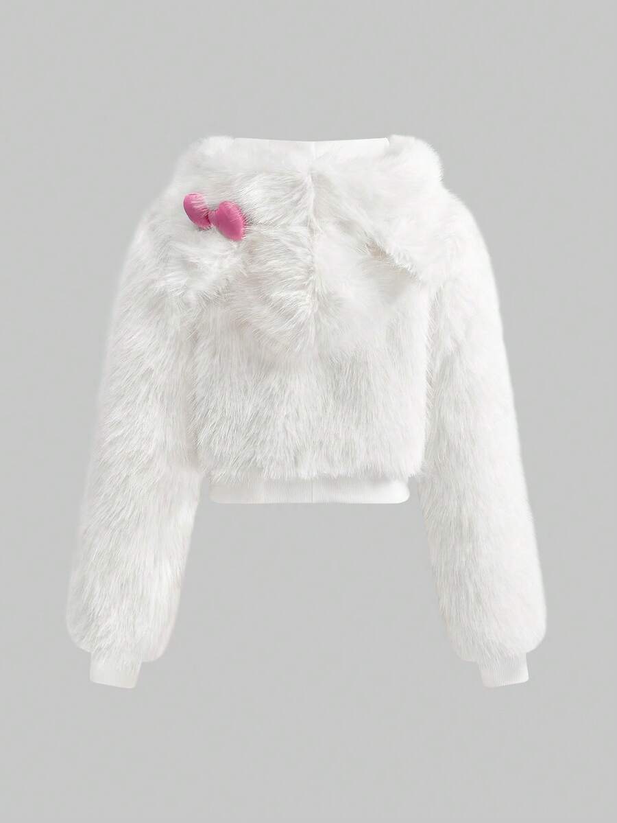 Kawaii Cute Cat Ear Bow Rivet Design Short White Faux Fur Jacket