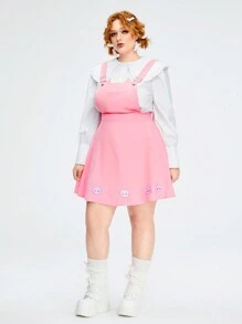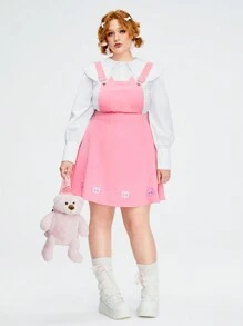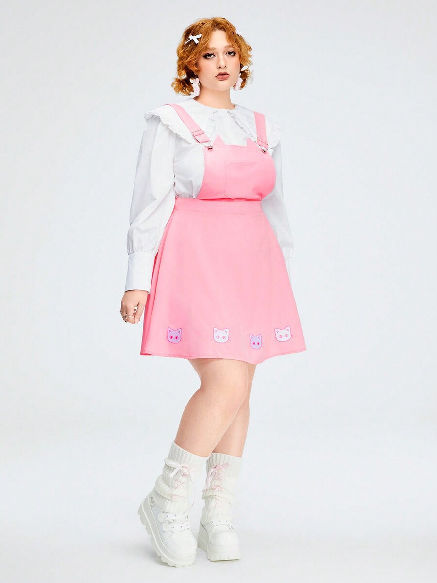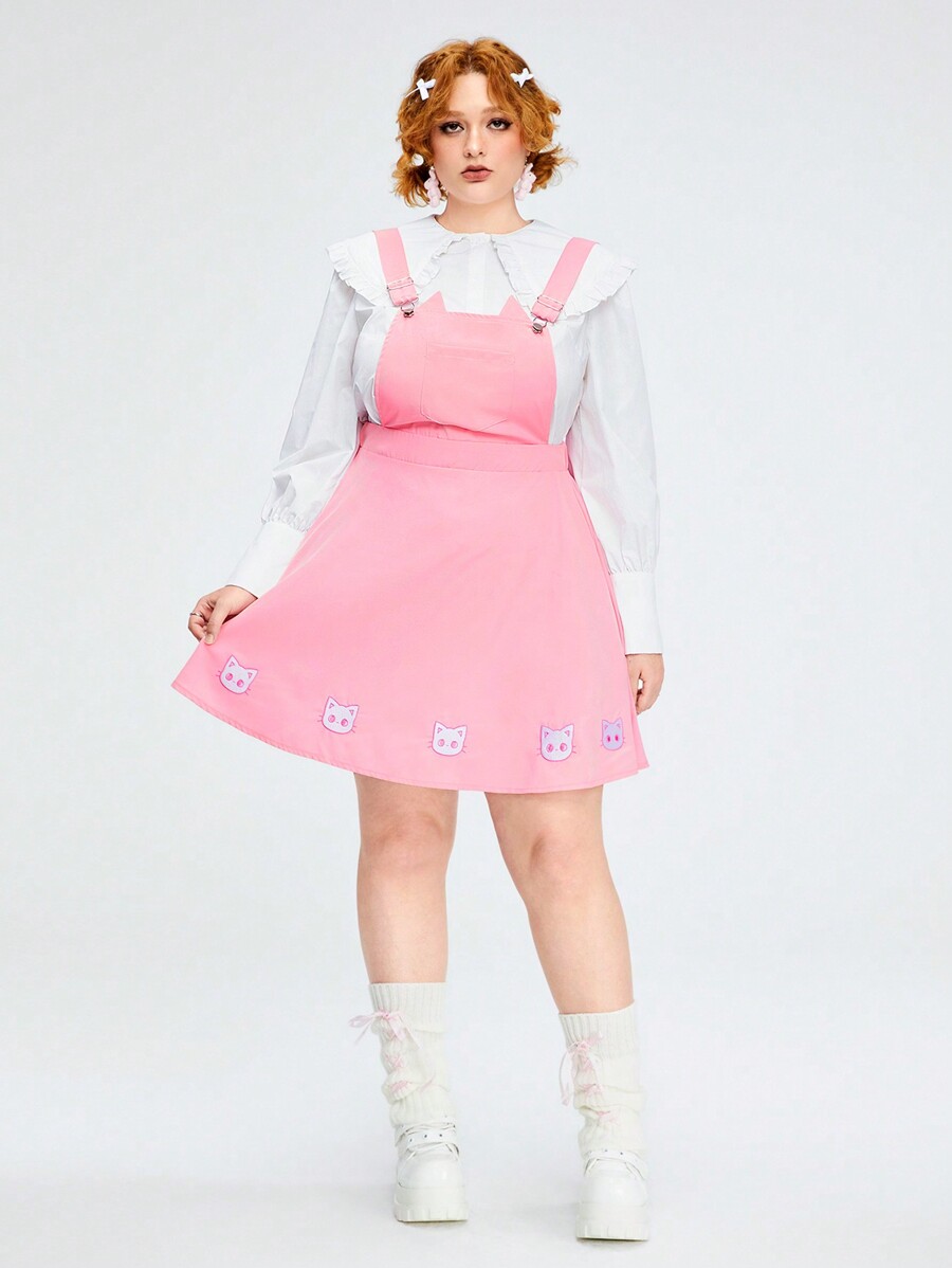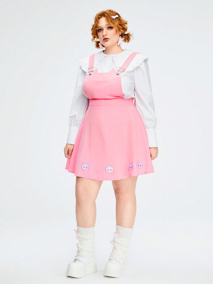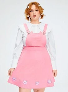 Kawaii Cute Cat Ear Embroidery Plus Size Suspenders Dress