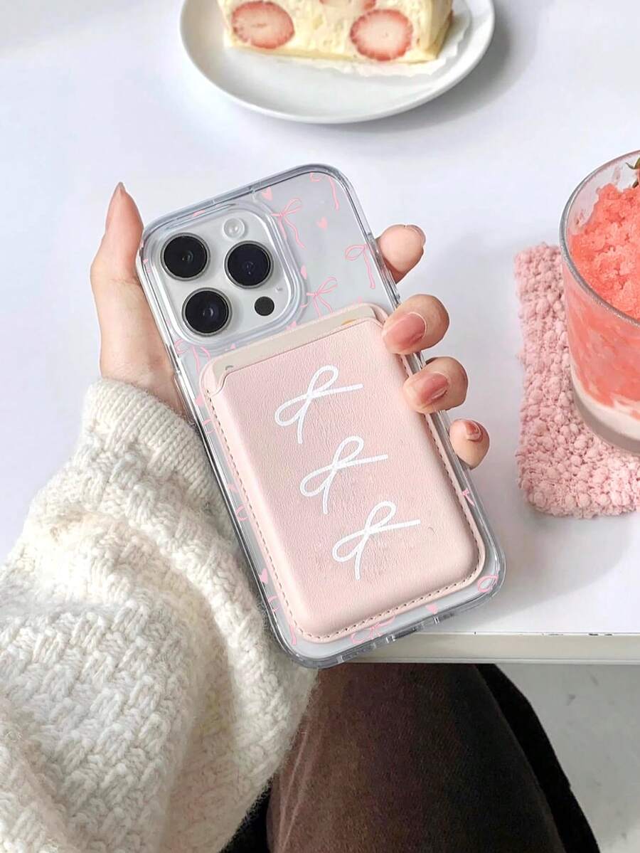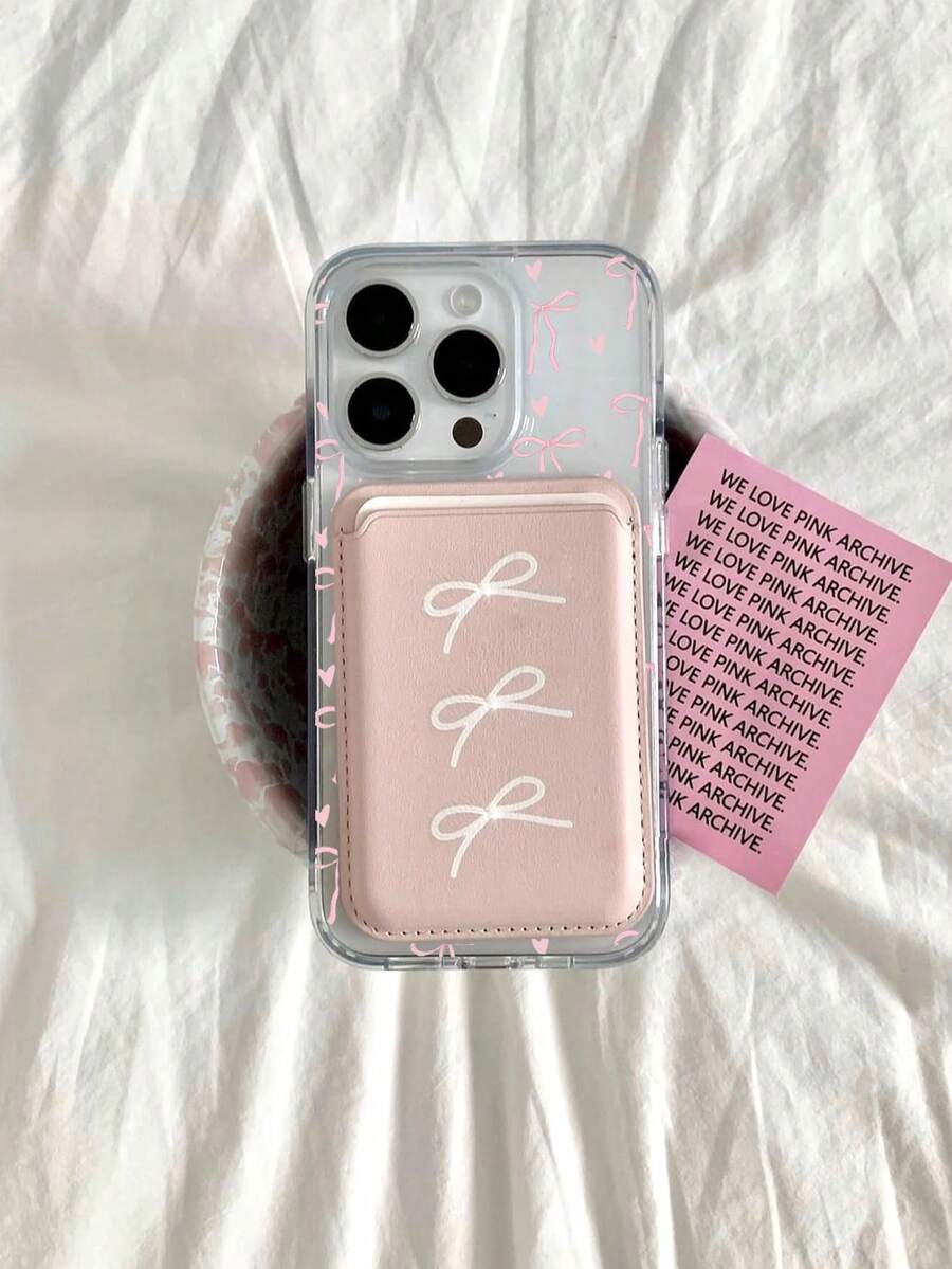 Kawaii Cute Heart & Bow Knot Magnetic Card Holder Transparent Phone Case, Silicone Protective Cover Compatible With Iphone 12 13 14 Series
