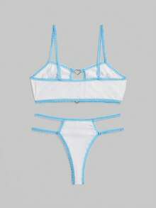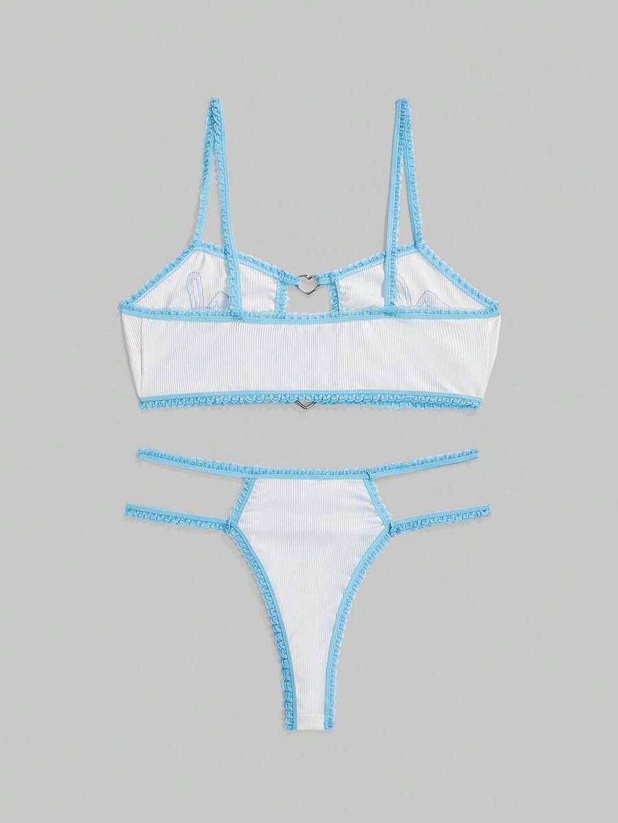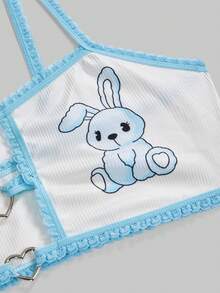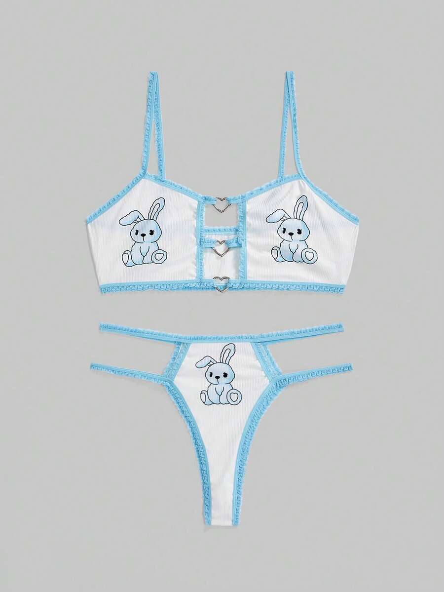Kawaii Cute Rabbit Heart Decor Contrast Trim Lingerie Set